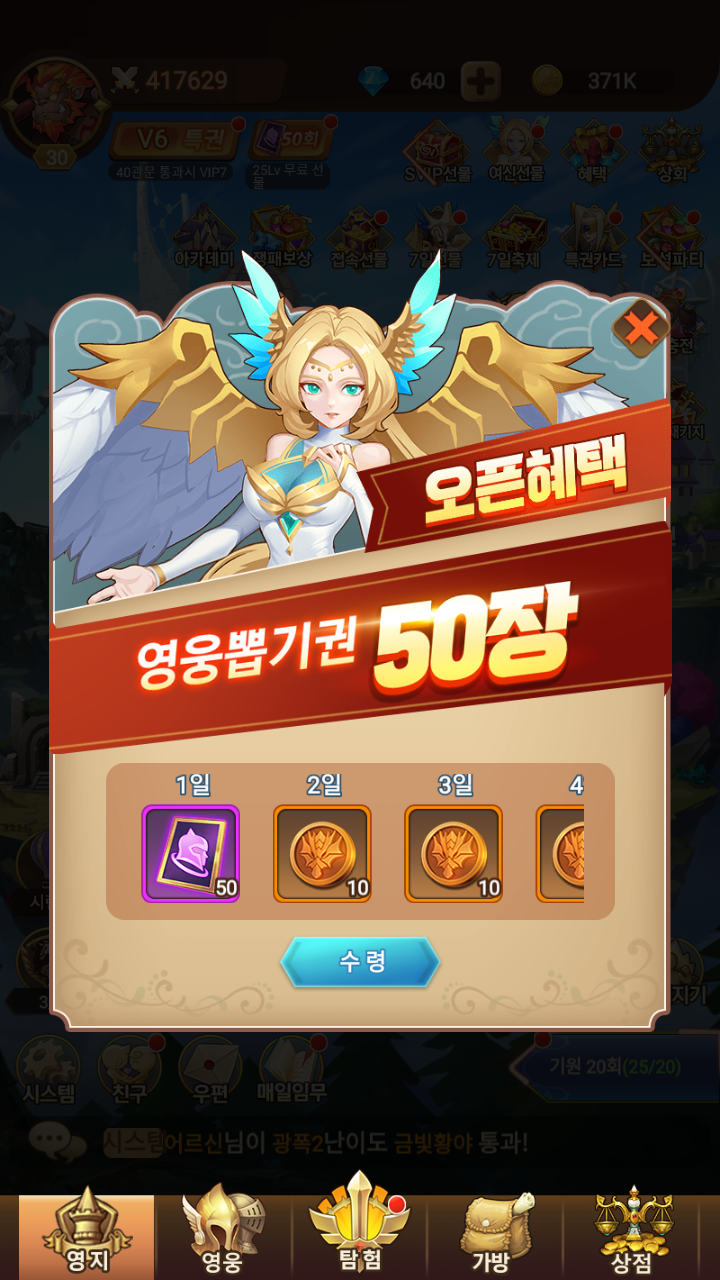 레벨업과 풍성한 아이템 만큼 기분 좋은 일이 또 있을까 싶은데요, 방치형모바일게임 에픽아레나의 경우 무과금으로도 충분히 즐길 수 있도록 무료 VIP10 등급이 가능하고, 관청을 비롯한 여신선물, 기원신전등 성장에 많은 도움을 받을 수 있어 부족함 없이 즐길 수 있습니다.