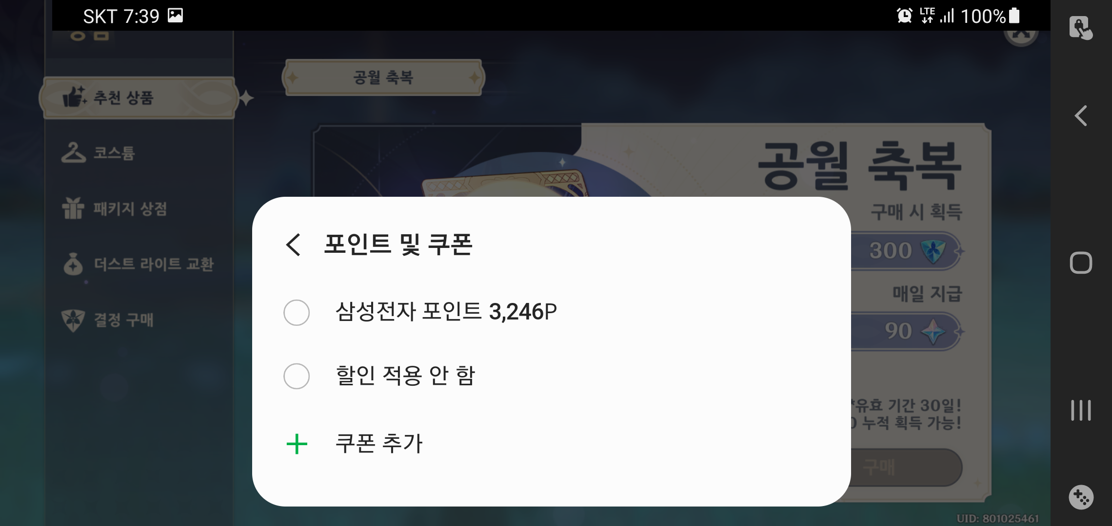 앞서 언급한 것처럼 원신 업데이트와 함께 라이덴 쇼군을 획득하기 위한 기원 참여를 위해 창세의 결정을 구매해 보았습니다. 삼성전자 멤버십 이벤트가 있어 갤럭시 플립Z 응모도 함께 된다고 생각하니 마음이 가볍더군요.