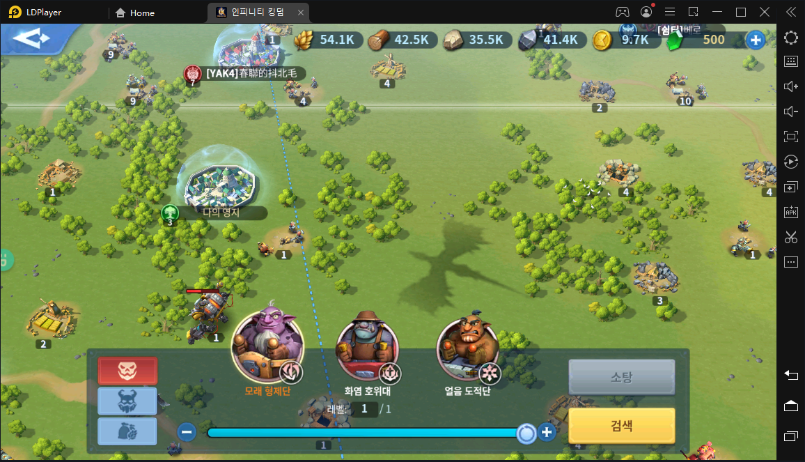 영지 밖으로 나가면 호시탐탐 영지를 노리는 다른 왕국의 유저들도 가득하지만, 필요한 아이템과 자원을 획득할 수 있는 사냥도 가능합니다. 필요한 자원과 전투력에 맞는 노움 군단을 검색하고, 군단을 구성해 공격을 할 수 있습니다.