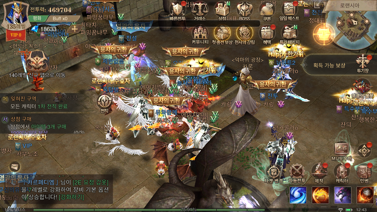 블러드 캐슬이나 악마의 광장에 진입하기 위해 이동하면, 광장에 모인 수많은 유저들의 모습을 확인할 수 있어 뮤 아크엔젤2의 인기를 실감할 수 있습니다. 저마다 다른 외향과 칭호를 가지고 있는 모습을 보고 있으니 좀 더 분발해야겟다는 생각이 들더군요.