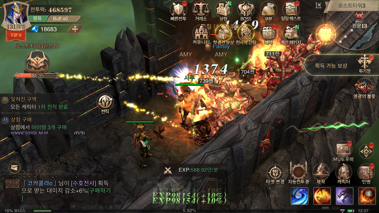 중간중간 레벨 제한이나 전투력 때문에 진행이 막히는 경우가 발생하기도 합니다. 이럴 땐 월드 보스나 악마의 광장 등을 활용해 부족한 전투력을 메꿔줄 수 있는 장비를 획득하고, 경험치를 획득해 필요한 조건을 만족시킬 수 있습니다.