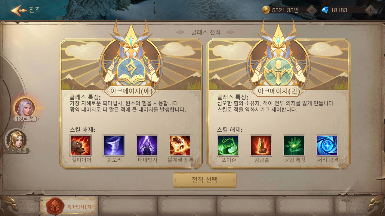 캐릭터가 성장함에 따라 전직도 진행하게 됩니다. 전직은 각 캐릭터마다 다른 특성을 갖게 되기 때문에 본인의 플레이 성향과 전체적인 구성을 감안해 선택하는 것이 좋습니다. 그리고 140레벨 이상 진행 가능한 퀘스트를 포함해 총 4개의 전직 퀘스트를 클리어해야만 최종 전직이 가능합니다.