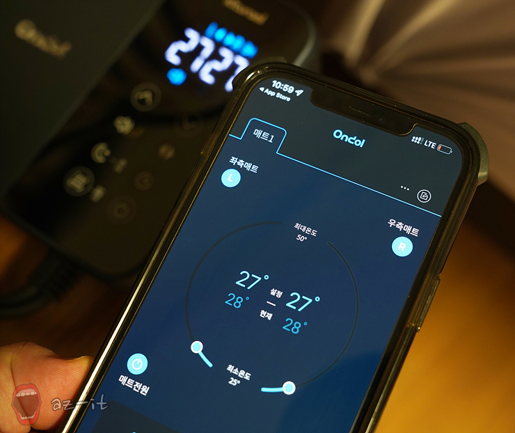 핸드폰 앱을 연동하면 온도 선택부터 매트 전원 그리고 각종 모드까지 선택할 수 있어 온도조절기를 일일이 건드리지 않아도 스마트한 조절이 가능합니다. 온도 조절을 위해서 누가 온도조절기까지 움직일 필요 없이 스마트폰 하나로 해결할 수 있으니 참 편리합니다.