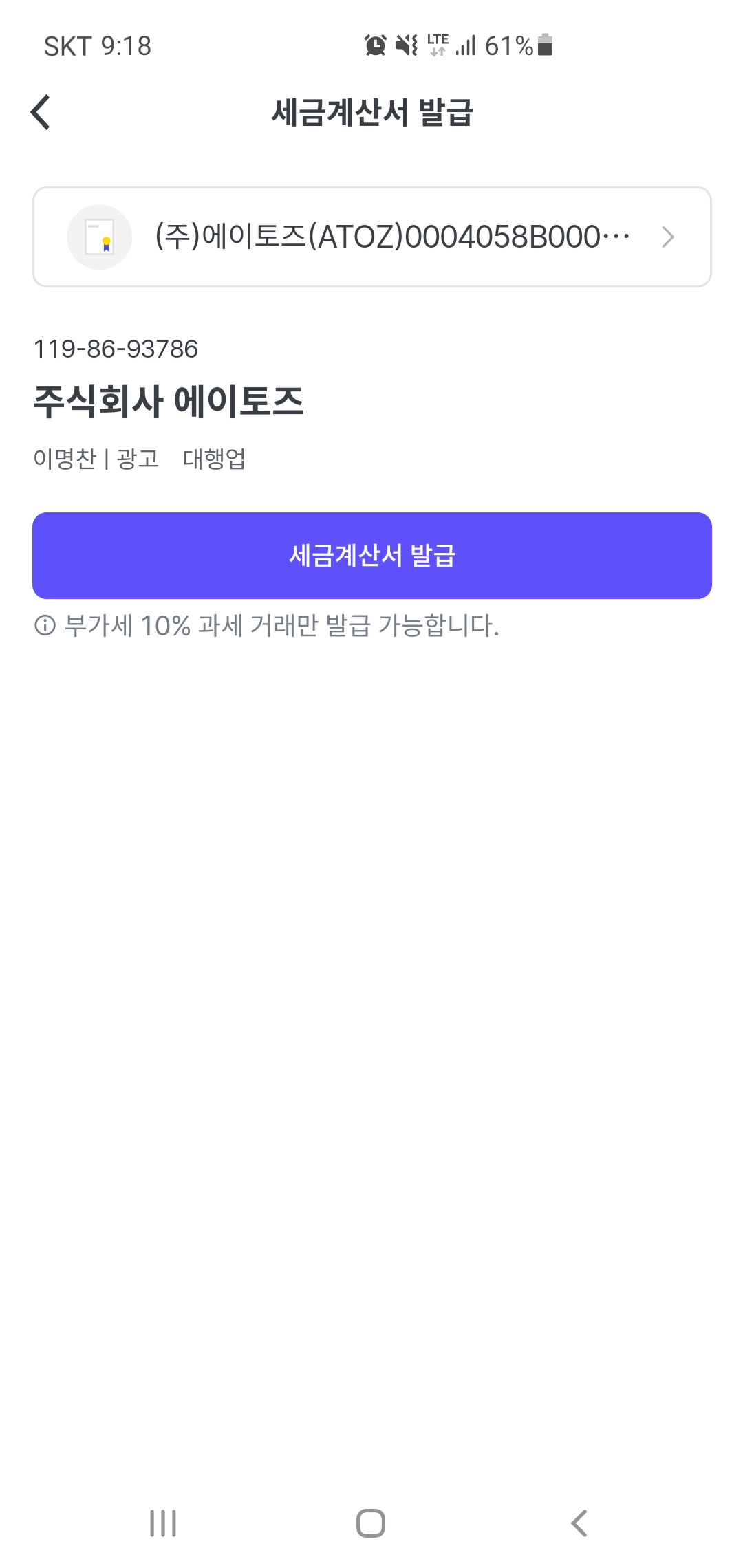 세금계산서 발행도 홈택스에 접속할 필요 없이 무료로 발급할 수 있습니다. 홈택스 접속에 사용하는 인증서를 등록하기만 하면 언제 어디서든 모바일로 세금계산서를 발행할 수 있는데요, 별도의 비용없이 무료로 발급 가능해 비용에 대한 부담도 전혀 없습니다.