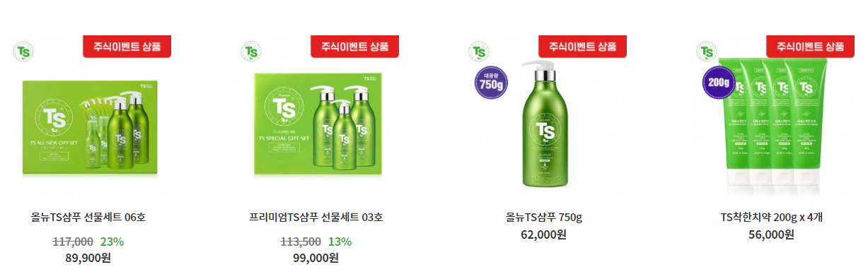 탈모케어하면 떠오르는 브랜드가 TS일 정도로 높은 인지도와 탄탄한 지지층을 형성하고 있는데요, 이를 바탕으로 한 두피 전용 케어 아이템들이 지속적으로 출시되면서 폭넓은 제품 라인업과 시장규모를 만들어 가고 있습니다.
