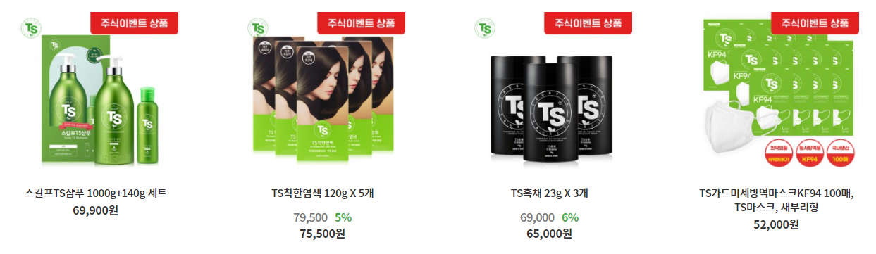 실제로 주변에 탈모로 인해 고민하고 계신 지인들 대다수가 TS제품을 사용하고 있을 정도인데요, 이번에 진행되는 TS 트릴리온 주주찬스 이벤트는 필요한 제품도 구매하고, 주식도 챙길 수 있는 흔치 않은 기회인 것 같습니다.