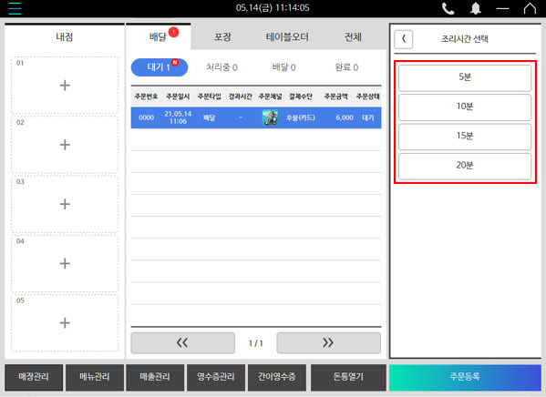 배달 앱 주문의 경우 처리시간 설정을 통한 자동 수락 기능을 탑재하고 있는데요, 1인 매장에서 주문이 몰리는 피크타임에 보다 쉽고 간편하게 주문을 수락할 수 있습니다. 앞서 주문이 오면 빠르게 처리해야 하고, 포스를 보느라 자리에서 떠나지 못하는 상황도 없는 상황을 경험해봤다면 메이트 포스의 자동 수락 기능은 꼭 경험해 보시라고 권해드리고 싶습니다.