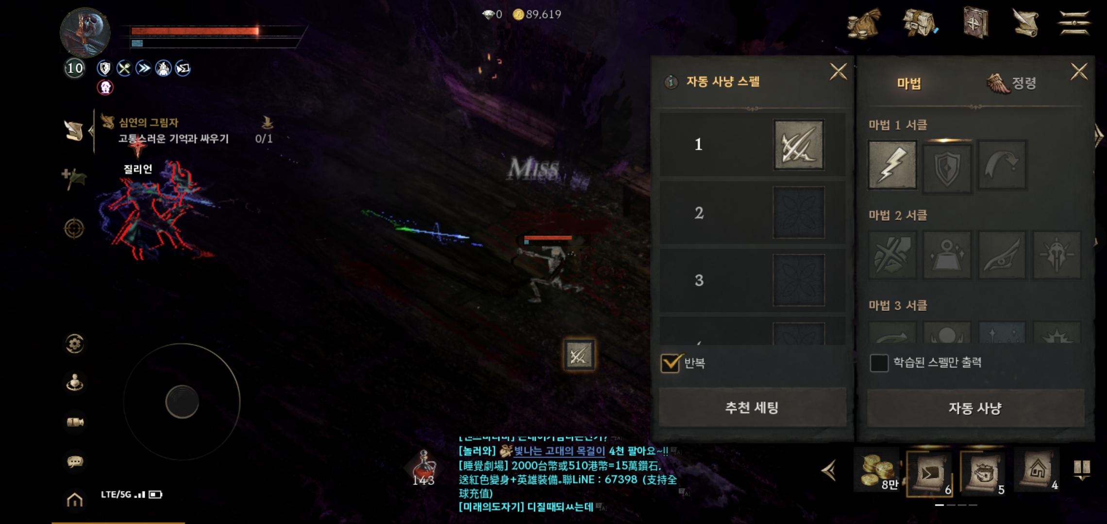 모바일게임추천 리니지W는 자동사냥과 자동이동 기능을 갖추고 있어 퀘스트 진행시 보다 편리하게 이동할 수 있고, 사냥 진행시 일일이 스킬을 클릭하지 않아도 되는 장점을 가지고 있습니다. 특히 자동 사냥에 필요한 스펠은 원하는 대로 세팅할 수 있고, 만약 세팅이 어렵다면 추천세팅을 선택해 보다 수월하게 사냥이 가능합니다.