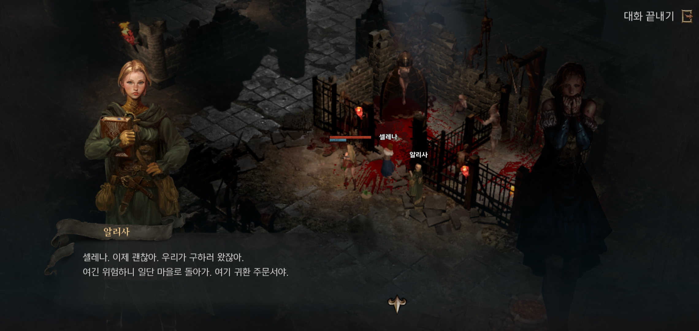 초반 빠른 캐릭터 육성을 원한다면 자동사냥을 통한 무한 사냥도 좋지만, 기본 장비와 많은 경험치를 획득할 수 있는 퀘스트 진행이 필요합니다. 퀘스트는 마을 곳곳에 위치한 NPC와 대화를 진행하면서 이어지는데요, 상황에 따라 NPC와 의 대화 방식도 달라지고, 빠르게 대화를 끝낼 수도 있어 시간 단축이 가능합니다.