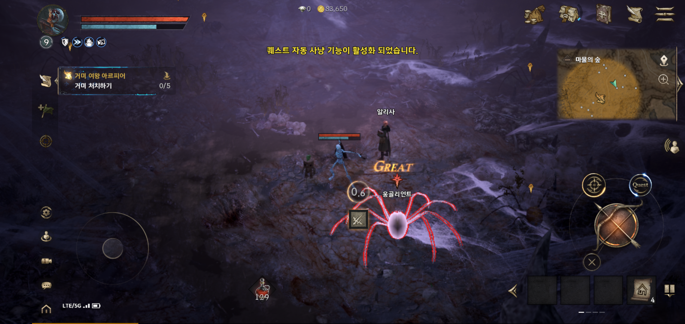 대기열이 생길 정도로 유저가 몰리는 상황이라 끊어지는 불편함이 생기지 않을까 걱정도 조금 있었는데요, 퀘스트를 진행하고사냥을 하는데 불편함을 전혀 느끼지 못할 정도로 매끄러워 준비를 정말 많이 했다는 느낌을 받았습니다. 특히 활을 사용해 사냥을 하는데, 별도의 화살을 구입하지 않아도 되니 너무 좋더군요.
