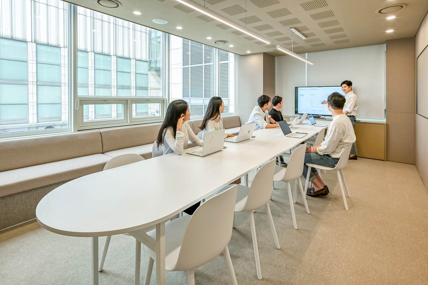 패스트파이브가 보유하고 있는 지점 수도 거점/분산 오피스에 최적화되어 있습니다. 2021년 10월 기준 38개 지점과 파이브스팟(라운드멤버십)12개 지점으로 국내 공유 오피스 중에서는 압도적으로 지점수가 많은데요, 직원들의 집과 가까운 다양한 위치에 원하는 만큼 선택해 직원들의 만족도를 최대한 높일 수 있습니다.