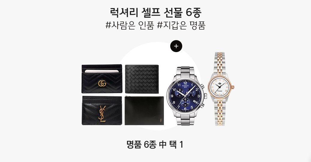 SK브로드밴드에서 준비한 럭셔리 셀프 선물 6종! 구찌지갑부터 생로랑지갑, 로즈몽 시계, 티쏘시계, 보타가베타지갑까지 명품으로 구성된 6종의 아이템이 준비되어 있습니다. 여기서 원하는 아이템 한 가지를 선택할 수 있는데요, 어떤 아이템을 선택하더라도 만족스러운 선택이 될 것 같습니다.