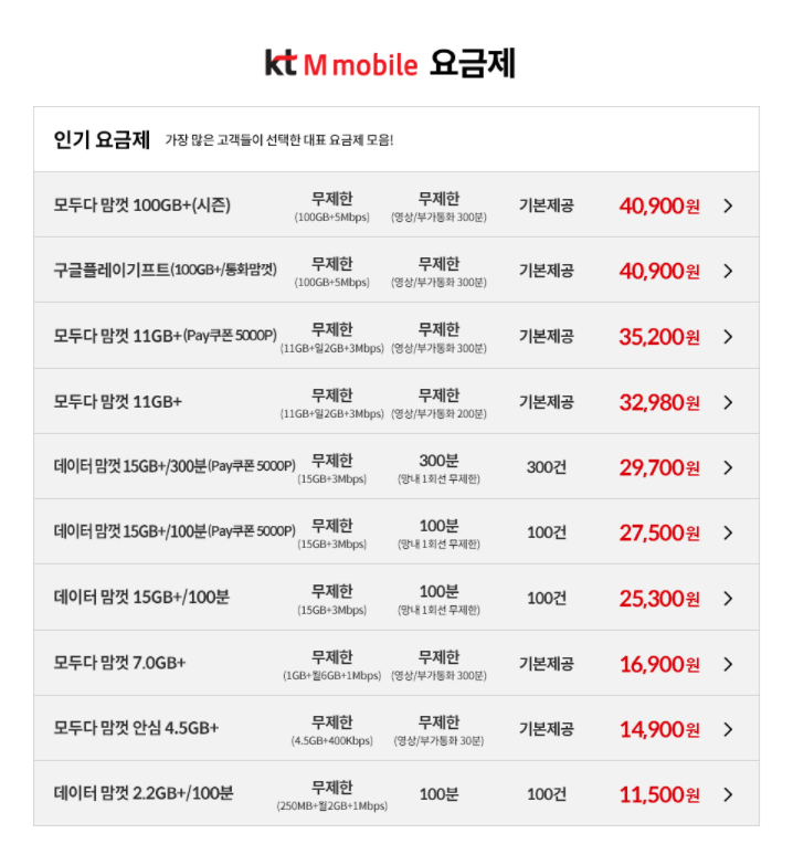 kt M모바일 요금제 홈페이지 : https://www.ktmmobile.com/m/event/eventDetail.do?ntcartSeq=925&pageNo=1&sbstCtg=E