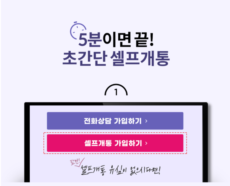 특히 셀프 개통을 선택하면 본인인증 진행을 통해 단말기 유심을 장착하면 바로 개통이 완료돼 5분 내외로 간단하게 진행할 수 있어 편리합니다.
