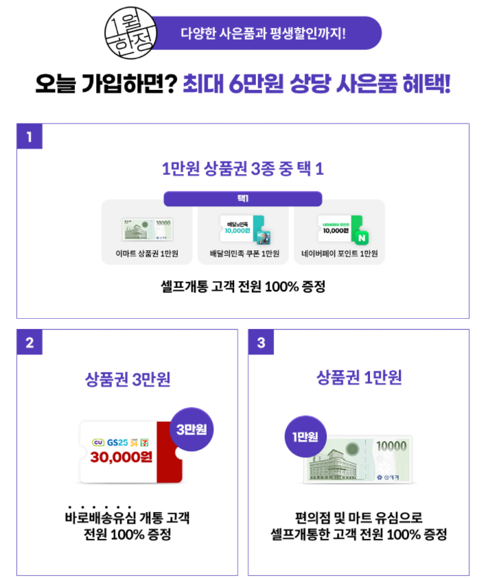 바로 배송으로 유심을 받고 셀프 개통 진행 시 13만 원 이상의 혜택도 받을 수 있는데요, 매일 10시~22시에 주문이 가능하고 주말에도 구입 가능해 저녁에도 제품 배송이 가능한 점이 특징입니다. 무엇보다 개통 시 필요한 유심을 빠르게 받아볼 수 있다는 점이 장점으로 전국 어디서나 가능한 만큼 빠른 개통을 원한다면 챙겨보시길 권해드립니다.