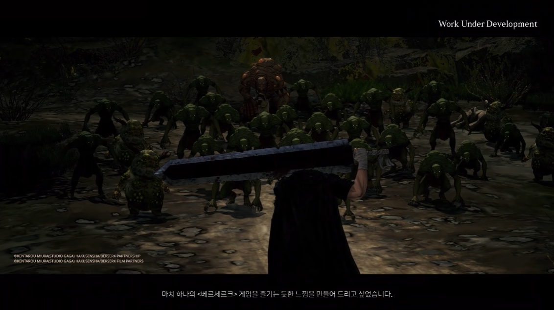 TJ's Letter 영상에서 공개된 인게임 영상을 보면 베르세르크 주인공인 검은 검사 가츠를 확인할 수 있는데요, 원작에서 모습그대로 큰 대검을 휘둘러 몹을 공격하는 모습이 무척이나 인상적이었습니다. 외형 부분에 있어서도 캐릭터 모습이 그대로 구현된 듯한 느낌이었는데요, 베르세르크에 대한 이해가 있던 분들이라면 한층 몰입감 넘치는 플레이를 즐길 수 있지 않을까 합니다.