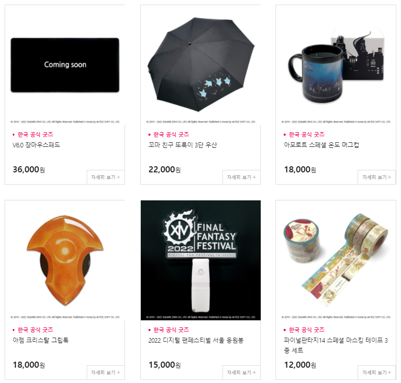 2022 팬페스티벌을 앞두고 한국 공식 굿즈가 스마트스토어를 통해 판매되기 시작했습니다. 한정수량으로 물량이 빠르게 소진되고 있어 파이널판타지14의 인기를 실감할 정도입니다. 한국 공식 굿즈 외에도 스퀘어에닉스 공식 굿즈 아이템도 다수 준비되어 있는 만큼 득템 하고 싶은 굿즈가 있는지 둘러보고 득템 해보시기 바랍니다.