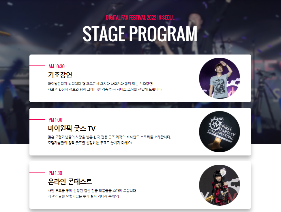 2022 강신제에 이어 기대되는 또 다른 파이널판타지14의 특별한 이벤트 팬페스티벌도 예고되었습니다. 오는 2월 12일 진행되는 팬페스티벌을 통해 진행예정인 프로그램 정보도 공개되어 확인 가능한데요, 기조강연을 시작으로 온라인콘테스트, 성우 특별 토크쇼 등 다양한 프로그램 등이 예고되고 있어 기대를 모으고 있습니다.