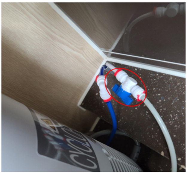 정수기에서 물이 안 나오거나 약하게 나오는 경우 가장 먼저 확인해야 할 부분 바로 정수리고 물이 제대로 들어가는지 확인이 필요합니다. 정수기와 연결된 싱크대 안쪽을 살펴보면 수전 아답터와 정수기 뒤편의 중간밸브가 보이는데요, 해당 부분이 제대로 열렸는지 확인이 필요합니다.