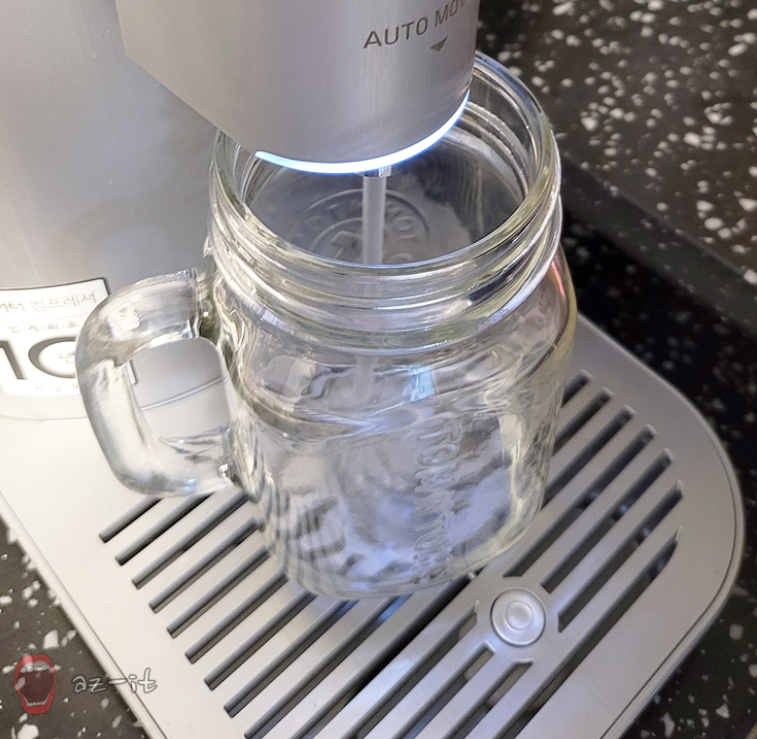 간혹 커피라던가 끈적한 게 튀어 굳어져 컵 센서가 고정되면 출수탭이 동작하지 않는 경우가 있습니다. 자동 컵 센서 주변에 끈적한 게 튀어 움직이지 않는다면 행주나 깨끗한 천에 미지근한 물을 조금 묻혀 살살 닦아주면 되는데요, 만약 컵 센서 주변에 끈적이는 물질도 없고 잘 움직인다면 이때는 고객센터로 연락해 점검을 받아봐야 합니다.