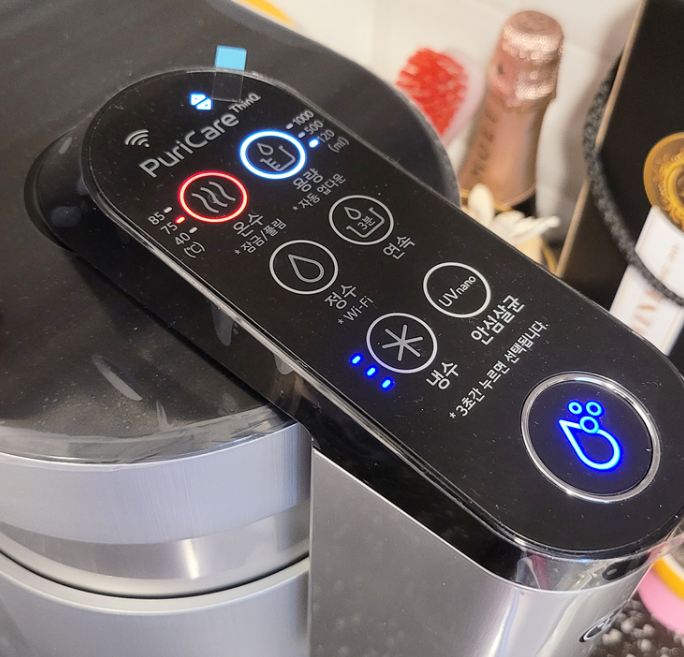 간혹 온수를 많이 사용할 경우 온도 표시가 40도 하나만 들어와 있고, 소리만 나는 상태에서 온도 선택은 안되는 경우가 있습니다. 이건 온수 모듈 과열 방지를 위해 온수 출수가 되지 않는 현상이라고 하는데요, 이때는 온수를 사용해도 가열이 되지 않기 때문에 정수와 같은 온도의 물이 나오는 게 정상이라고 하는군요. 15분 정도 시간이 지나면 온수 모듈이 식어 다시 온수 사용이 가능하다고 하는데요, 단 120ml 정도의 한두 잔에 해당하는 온수만 사용했는데 동일한 현상이 일어난다면 점검이 필요하다고 하는군요.