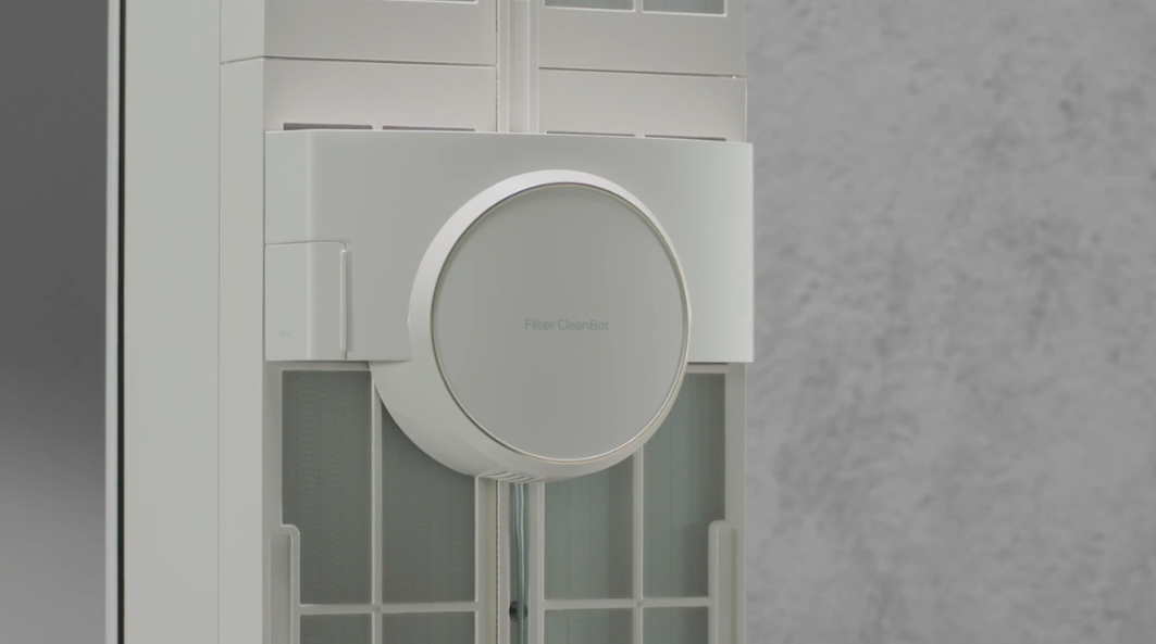 필터클린봇의 경우 바람이 들어오는 극세사 필터를 일주일마다 필터 클린봇이 상하 왕복하여 위생적인 청소를 해주고, 항균 극세필터에서 생활 먼지 등 입자가 큰 먼지를 걸러 극세 필터에 부착된 세균을 제거해줍니다. 이후 CAC 공기청정 단계에서 레이저 성질을 활용한 높은 정확도의 먼지 센서를 통해 에어컨 바람 속 극초미세먼지를 제거하게 됩니다.