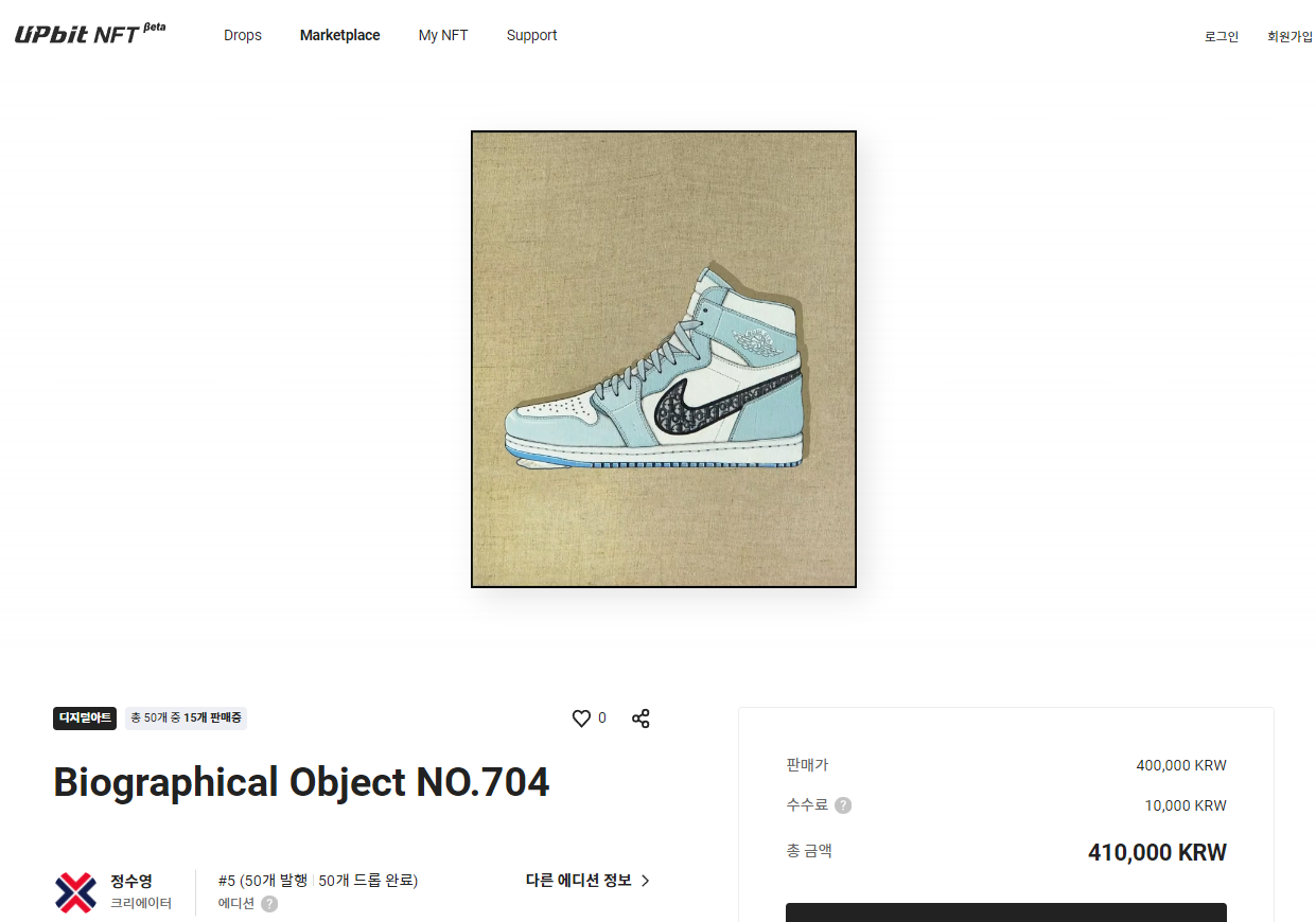 업비트 NFT Beta에서 거래되는 NFT 역시 개별 개체로 대체 불가능한 미술NFT를 포함한 디지털 콘텐츠를 원저작권자로부터 NFT발행부터 유통에 대한 권리를 부여받아 한정적으로 발행되는 방식으로 진행됩니다.