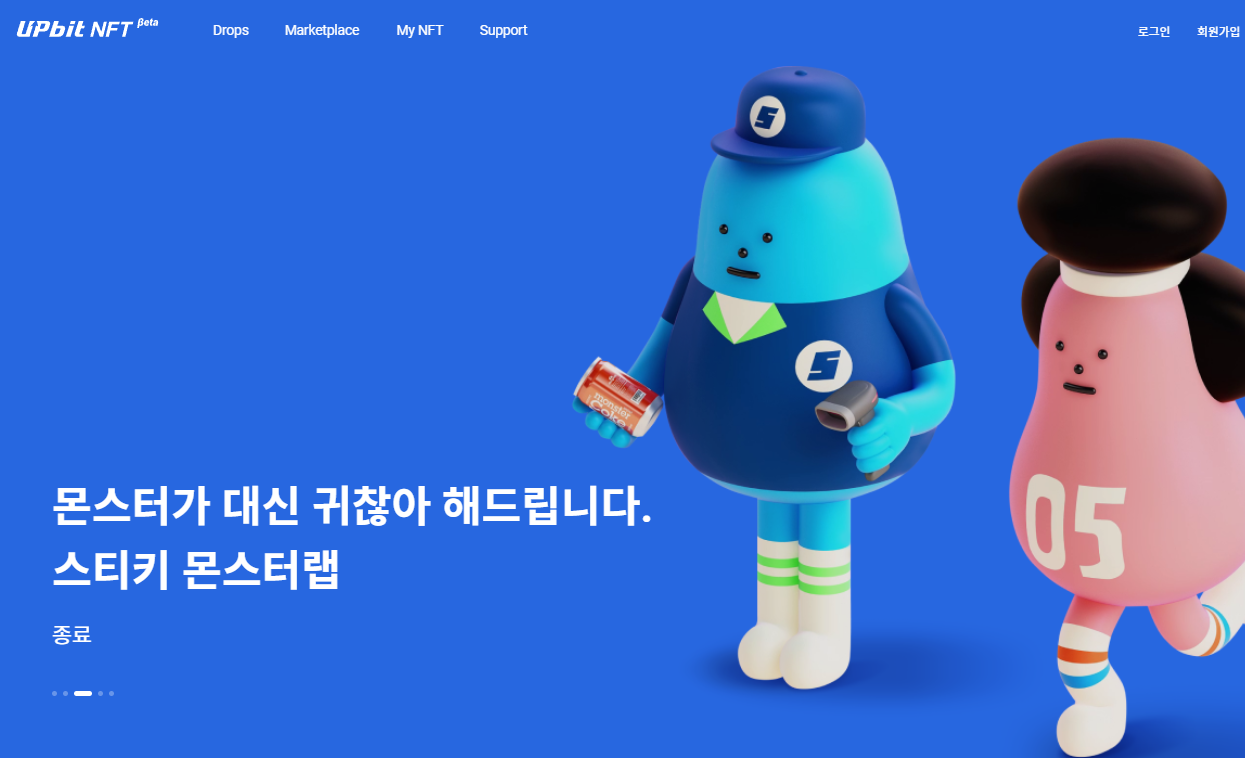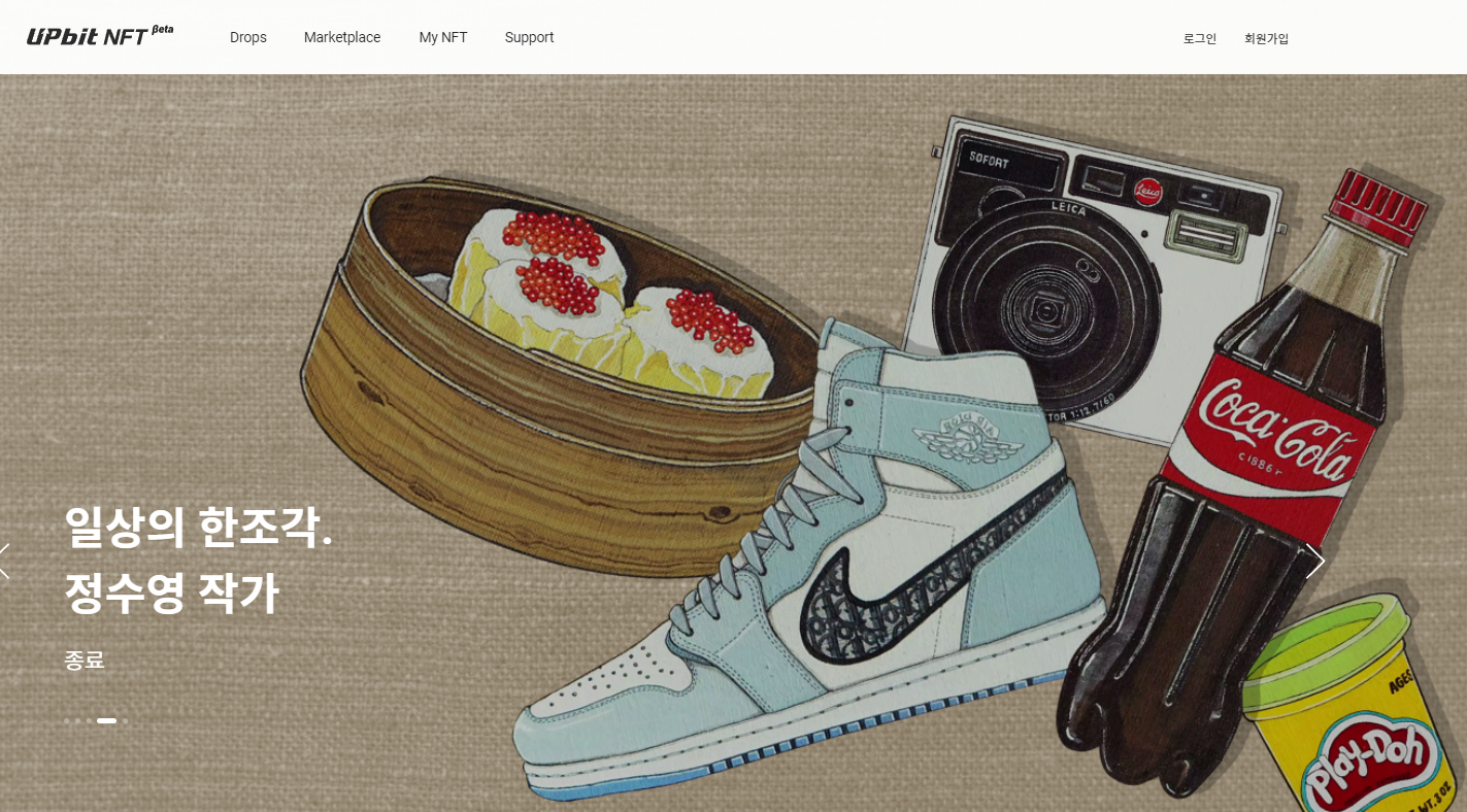 업비트 NFT beta에서는 드롭스(Drops)와 마켓플레이스(Marketplace)로 불리는 두 가지 마켓을 제공하고 있어 경매를 통해 원하는 NFT를 구입하거나, 다른 NFT콜렉터와 원하는 NFT를 두고 자유롭게 제안하고 거래할 수 있어 활발한 거래를 진행할 수 있기도 합니다.