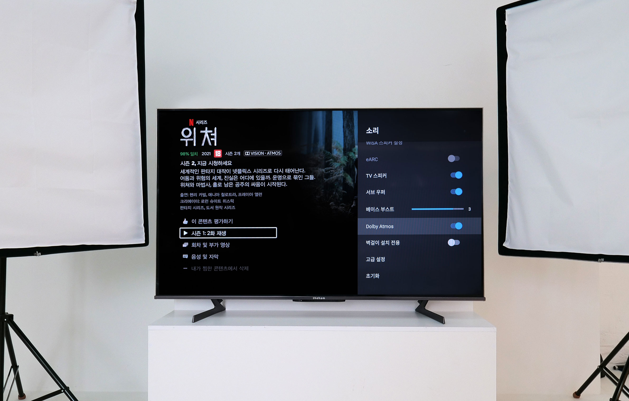 화질에 있어서는 Dolby Vision에서 한층 진화한 Dolby Vision IQ를 장착해 주변 밝기에 따른 최고의 시각적 경험이 가능합니다. TV에 탑재되어 잇는 조도센서와 반응해 영상을 자동적으로 조정해 최상의 화질을 제공하는데요, 넷플릭스를 포함해 디즈니 플러스, 플스 5, 엑스박스 등에 적용할 수 있습니다.