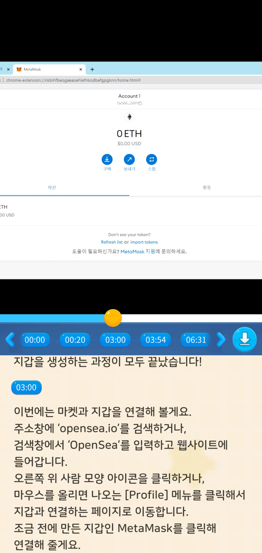 NFT 관련 강좌에서는 메타 마스크 지갑 만들기부터 마켓 업로드 방법까지 전체적인 과정을 쉽고 재미있게 알려주고 있어 배우기도 수월합니다. 특히 전용 애플리케이션 다운로드 링크로 바로 이동도 바로 가능하고 NFT 마켓 오픈씨로 즉시 이동도 지원합니다.