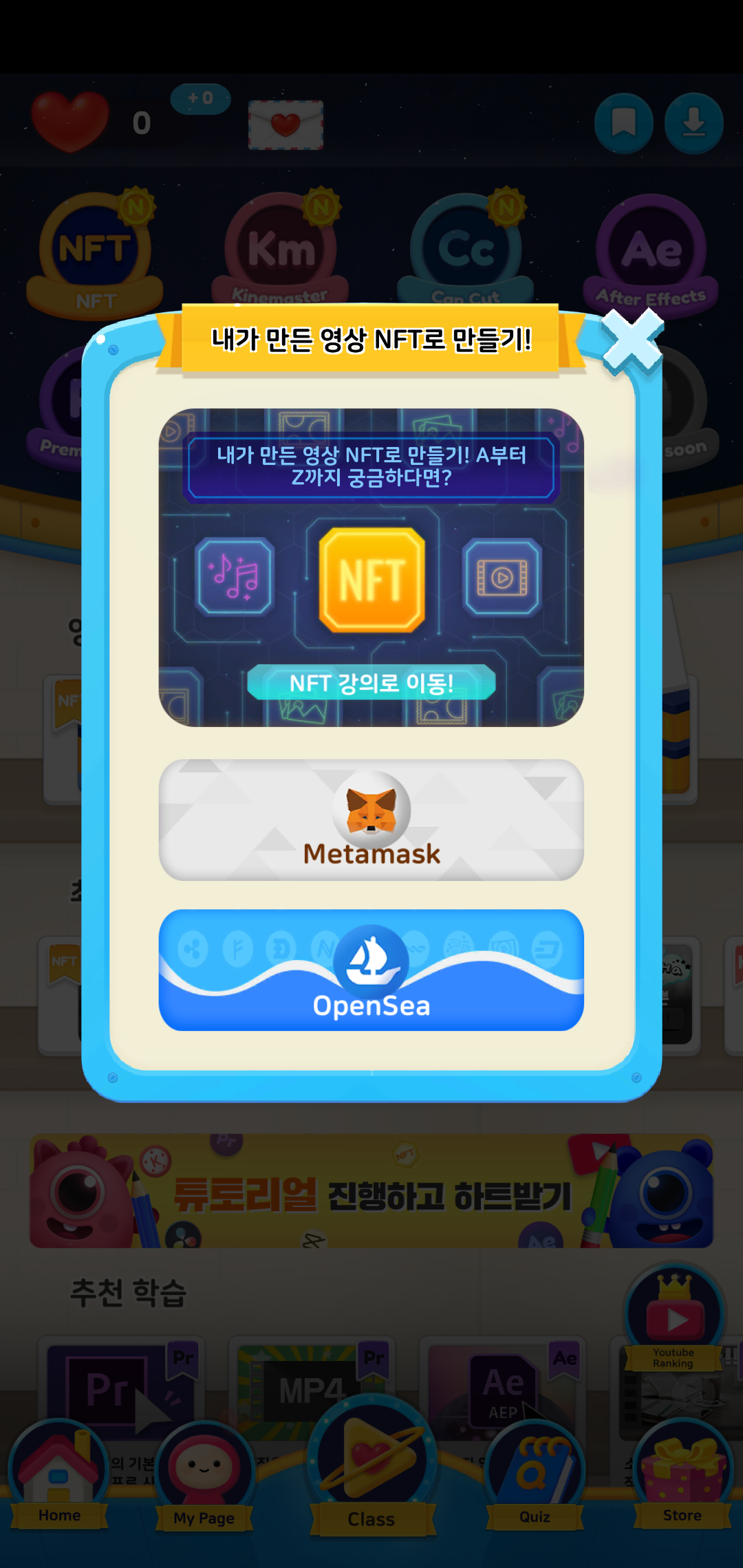 특히 최근 떠오르는 시장으로 알려진 블록체인 기술을 활용한 NFT에 대한 공부도 가능합니다. 내 영상을 NFT로 만들고 해당 영상으로 수익을 낼 수 있는 방법을 알려주고 있습니다.