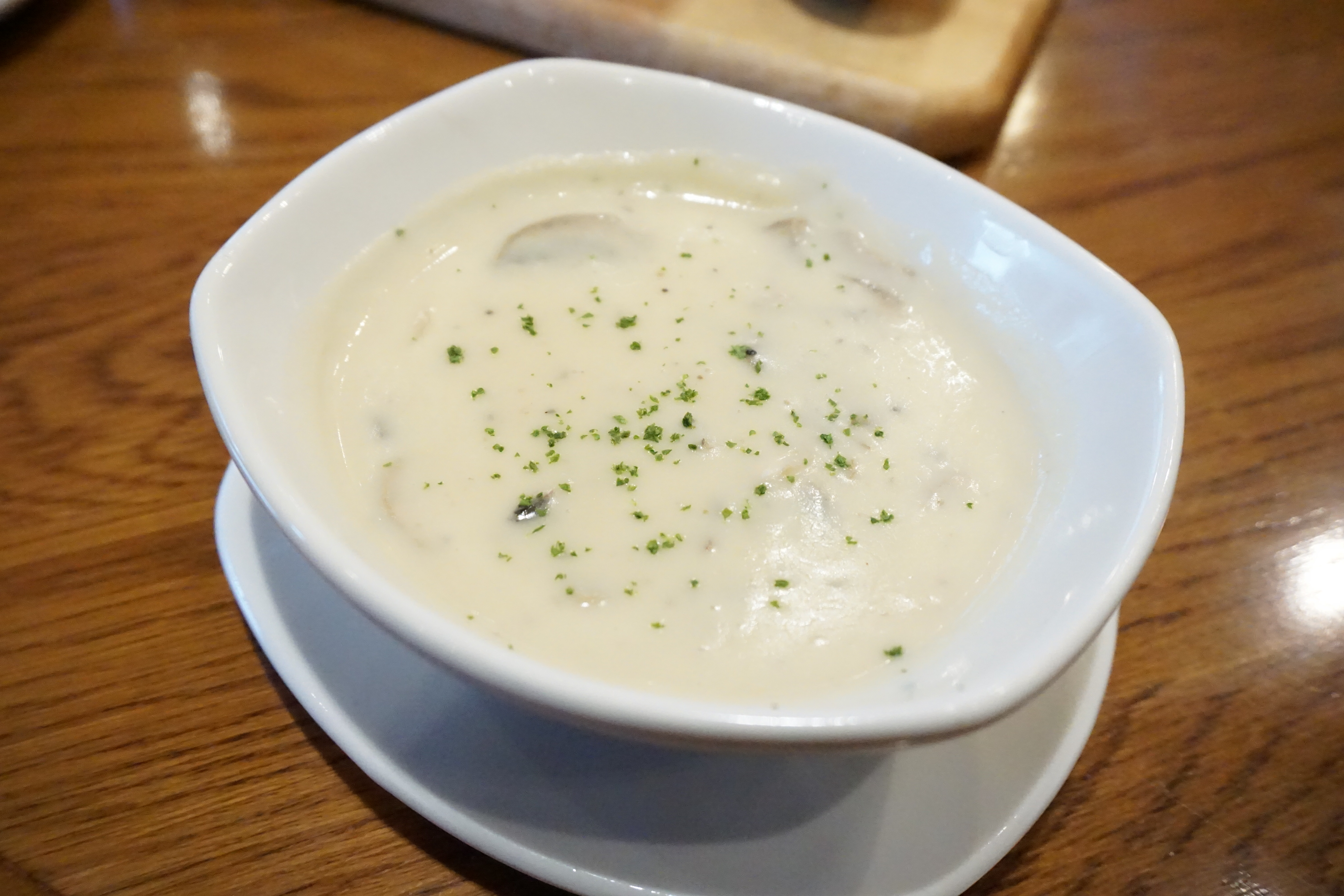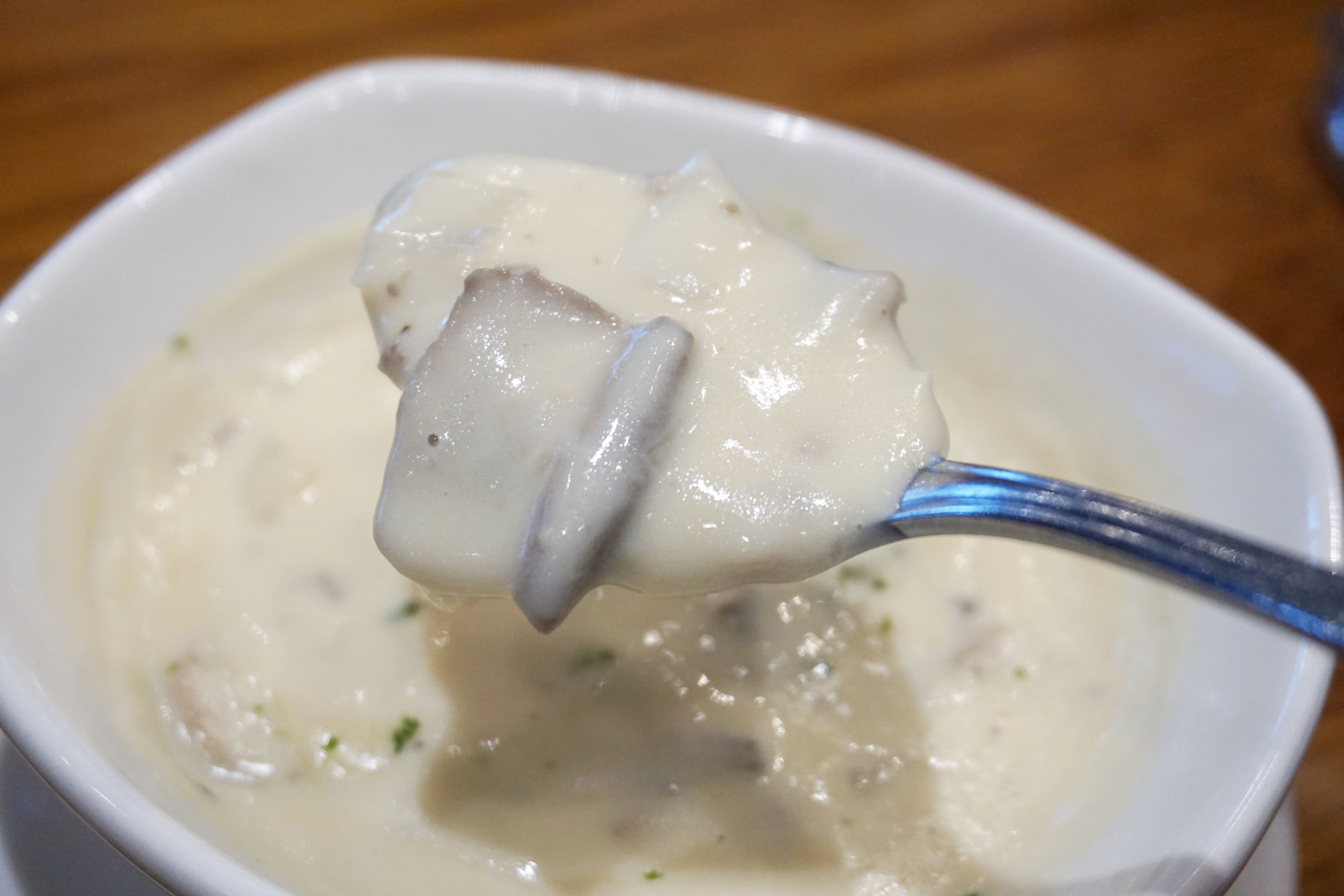 이윽고 준비된 수프! 이날은 옥수수 스프와 양송이 스프 중 하나를 선택할 수 있었는데요, 일행 모두 양송이 수프로 대동 단결하는 모습을 보여 웃음이 절로 나왔습니다. 양송이 수프의 진한 풍미와 입안에서 씹히는 양송이 식감은 메인 메뉴가 나오기 전 허기도 달래주고, 입맛도 돌게 만들어 만족스럽더군요.