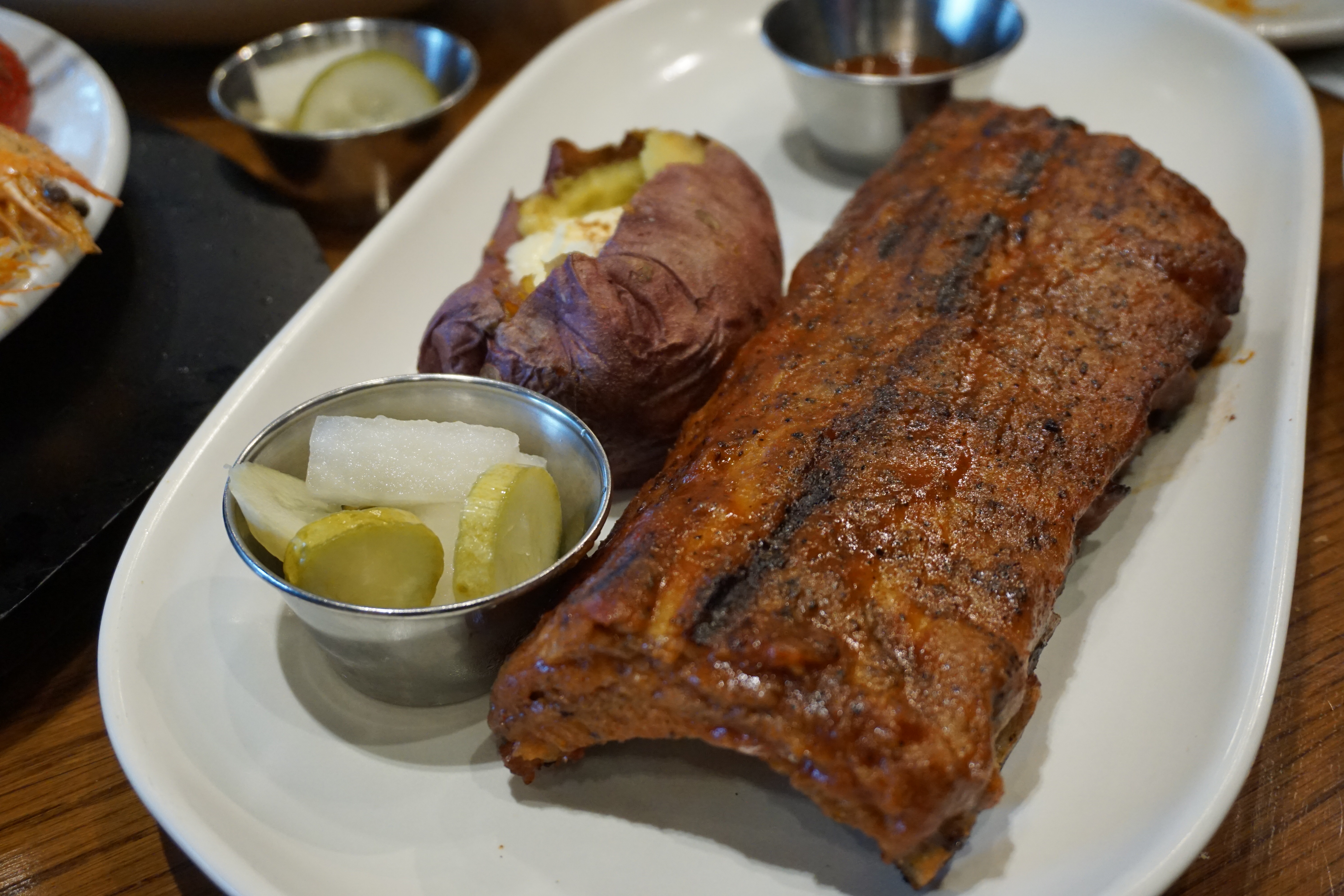베이비 백립도 통고구마를 사이드로 선택해 주문했는데 그릴에 잘 구워진 모습을 보고만 있어도 행복감이 절로 들었습니다. 부드러우면서도 단짠의 조화까지 아웃백 메뉴 추천에 빠지지 않는 이유가 있다니까요. 곁들여 나온 통고구마는 시나몬 슈가에 버터 조합이 선택하길 잘했다는 생각이 들었습니다.