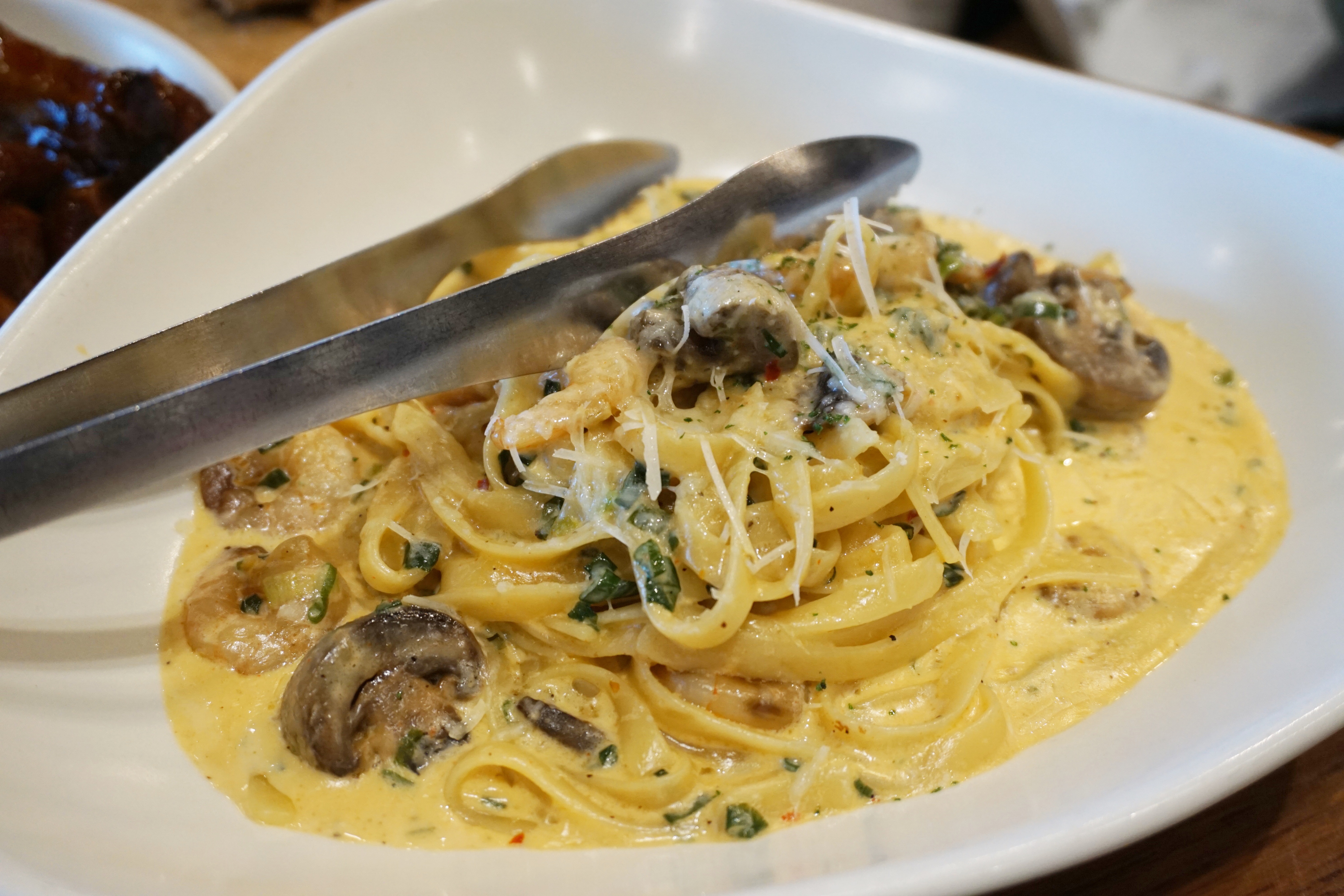 아웃백메뉴추천하면 빠지지 않는 투움바파스타도 준비되었습니다. 소스추가를 미처 못했지만, 꾸덕하면서도 진득한 소스가 마지막까지 부족하게 느껴지지 않을 정도여서 좋았어요. 넓은 면에 소스와 새우 그리고 버섯까지 더해지면 다른 파스타는 생각도 안 날 정도로 맛있습니다.