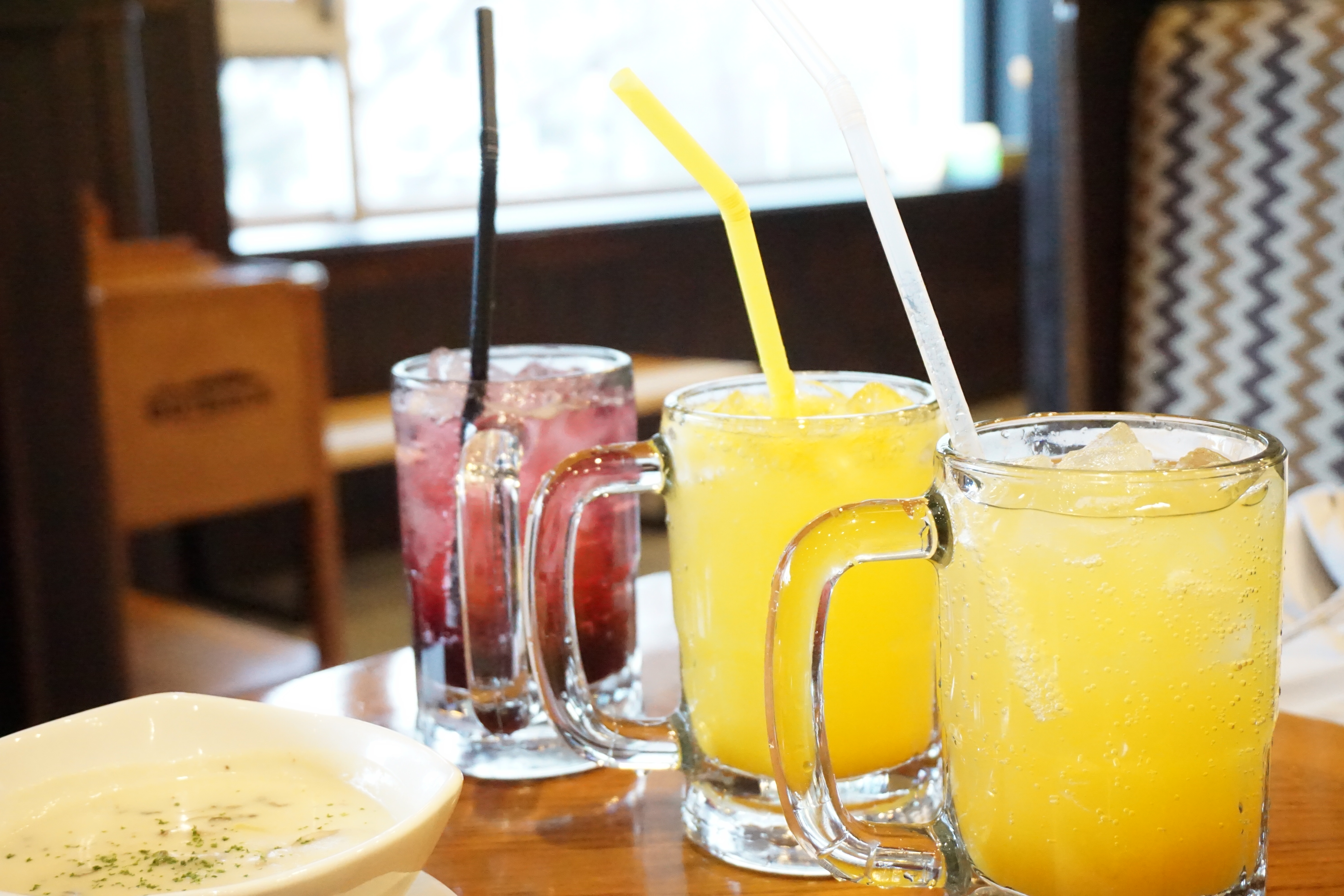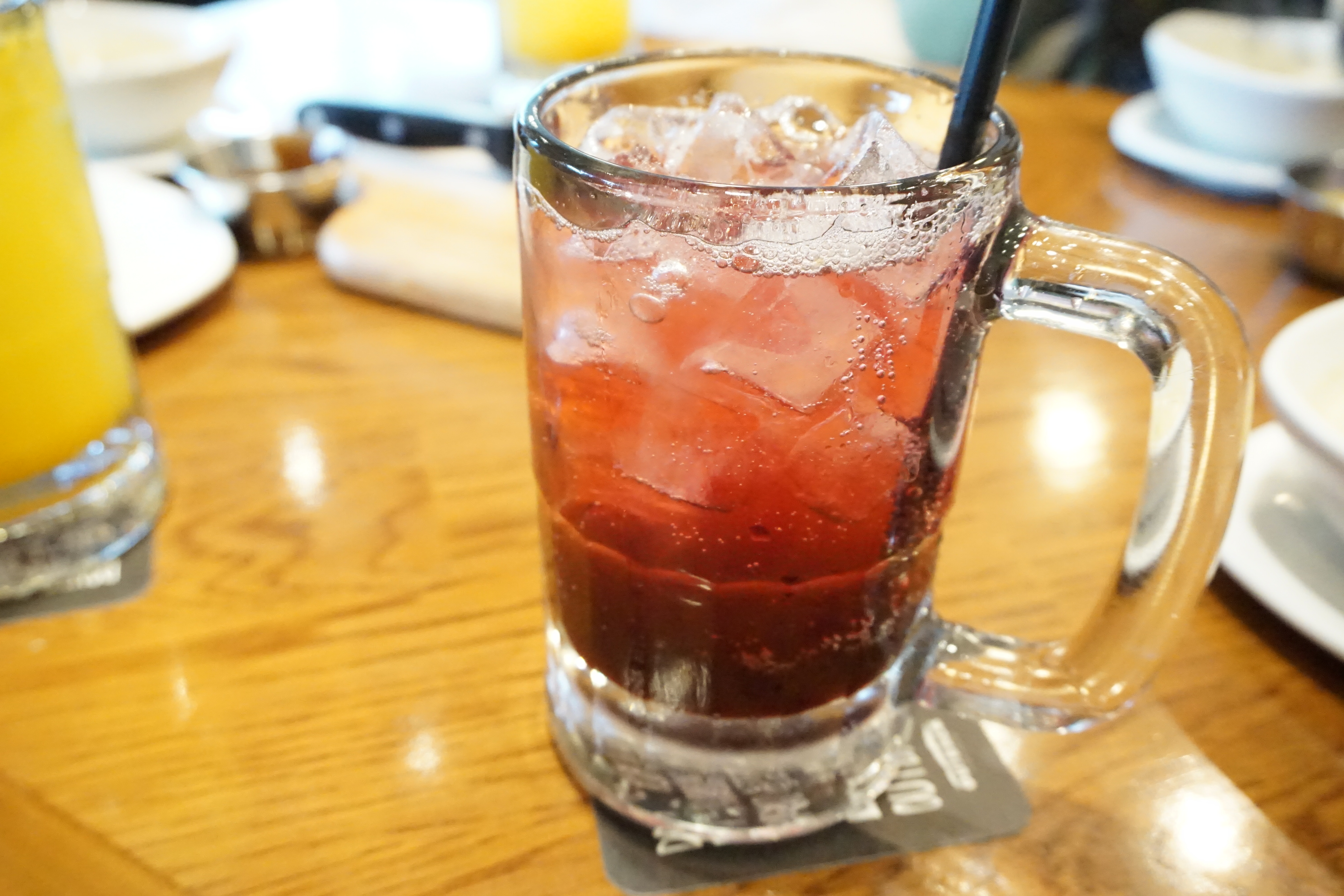 주문한 에이드도 금방 테이블에 올려졌습니다. 망고, 오렌지, 아사히베리, 자몽까지 눈으로 보는 즐거움도 좋고, 맛도 좋았어요. 비용을 추가하면 모히또로 변경도 가능하고, 에이드를 다 마시면 탄산음료를 추가해 마실 수도 있습니다. 평소 자몽 에이드만 고집하다 아사히베리 에이드를 선택했는데 새콤달콤 톡 쏘는 특유의 맛이 기분을 좋게 만들었습니다.
