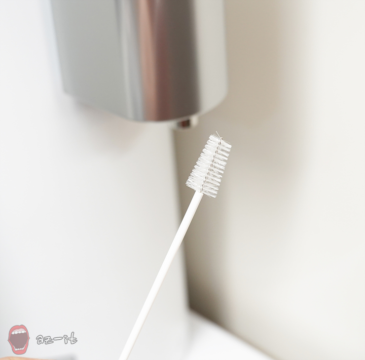 정수기 관리에서 가장 중요한 부분 중 한 곳 바로 출수구입니다. 출수구는 물이 받을 때 커피나 차가 튀어 지저분해질 수 있는 만큼 청결하게 관리하는 것이 중요한데요, 출수구의 경우 관리해주시는 매니저님께서 주고간 자가관리 키트에 있는 청소솔을 이용하거나, 만약 청소솔이 없다면 부드러운 빨대솔 같은 도구를 이용해 청소하면 간단합니다.