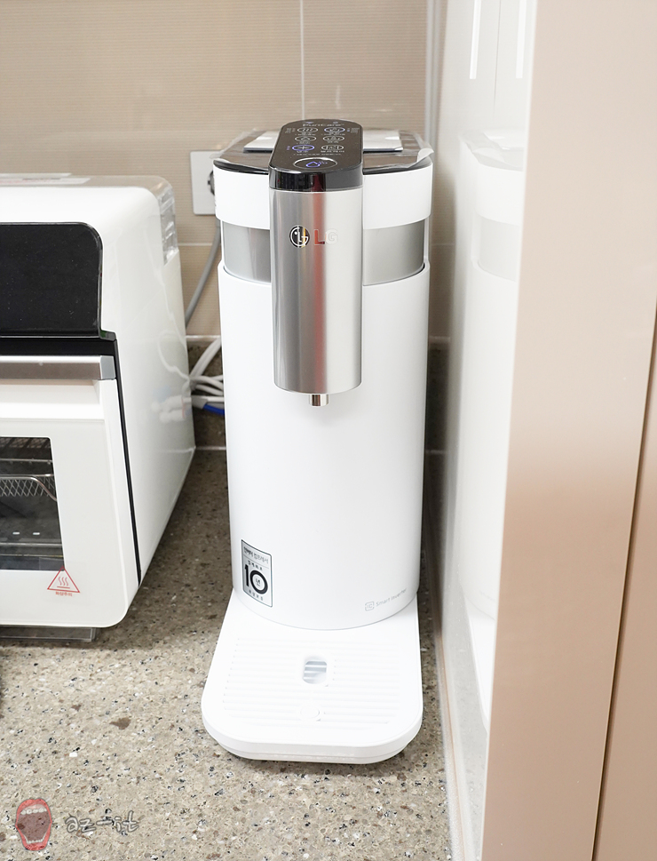 출수구 주변 청소도 필요합니다. 출수구를 청소한 후 출수구 주변을 청소해주면 되는데요, 깨끗한 행주나 천에 물을 조금 묻혀 주변에 묻은 커피나 차, 얼룩등을 닦아주면 됩니다. 최근에는 물티슈를 사용하는 분들도 많이 계시는데요, 물티슈 사용 시 세척 성분이 들어가 있는 제품이라면 외관이 손상될 수 있어 물티슈 사용 시 주의가 필요합니다.