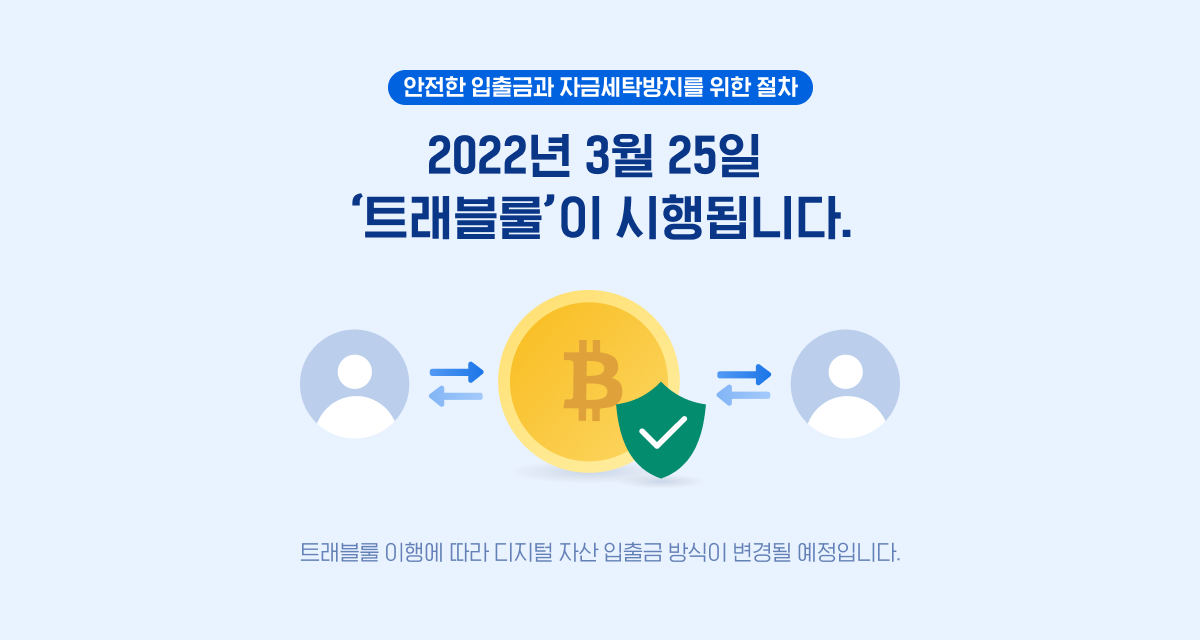 거래소에 개인지갑 등록이라는 절차는 기준 금융권에서 시행한 제도로 더욱 안전한 자산 거래를 위해 꼭 필요한 부분입니다. 절차가 추가되어 번거롭다고 생각되기도 하지만, 그만큼 보다 안전한 거래를 할 수 있는 데다, 개인지갑 연동과 등록이 오래 걸리지 않는 만큼 절차대로 설정하시고, 원활한 거래를 이어가 보시기 바랍니다.