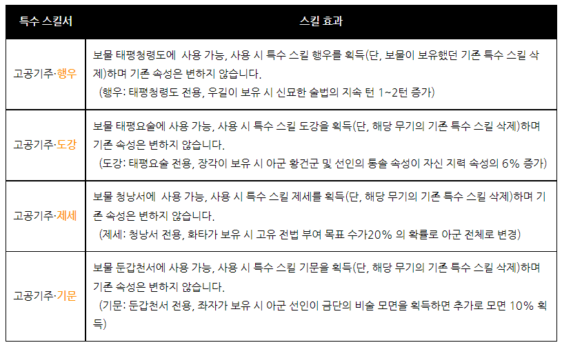 PK 시즌 패업 한정 공훈 상점 조정도 진행되었는데요, 고공기주·행우를 포함해 도강, 제세, 기문 특수 스킬서가 추가되었습니다. 특수 스킬서 추가에 따라 이를 바탕으로 한 변화가 예상되는데요, 이 외에도 컬렉션 잔수를 사건 전법 교환에 사용한다던가 크고 작은 시스템 기능 조정과 기능 복구들이 이루어졌습니다.