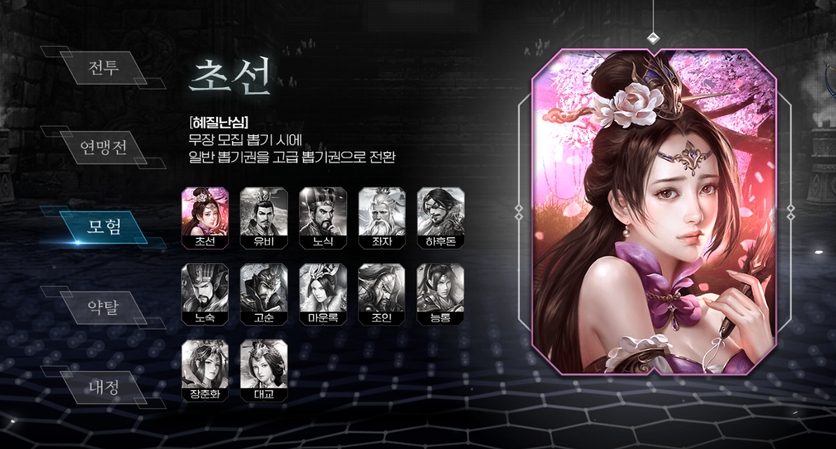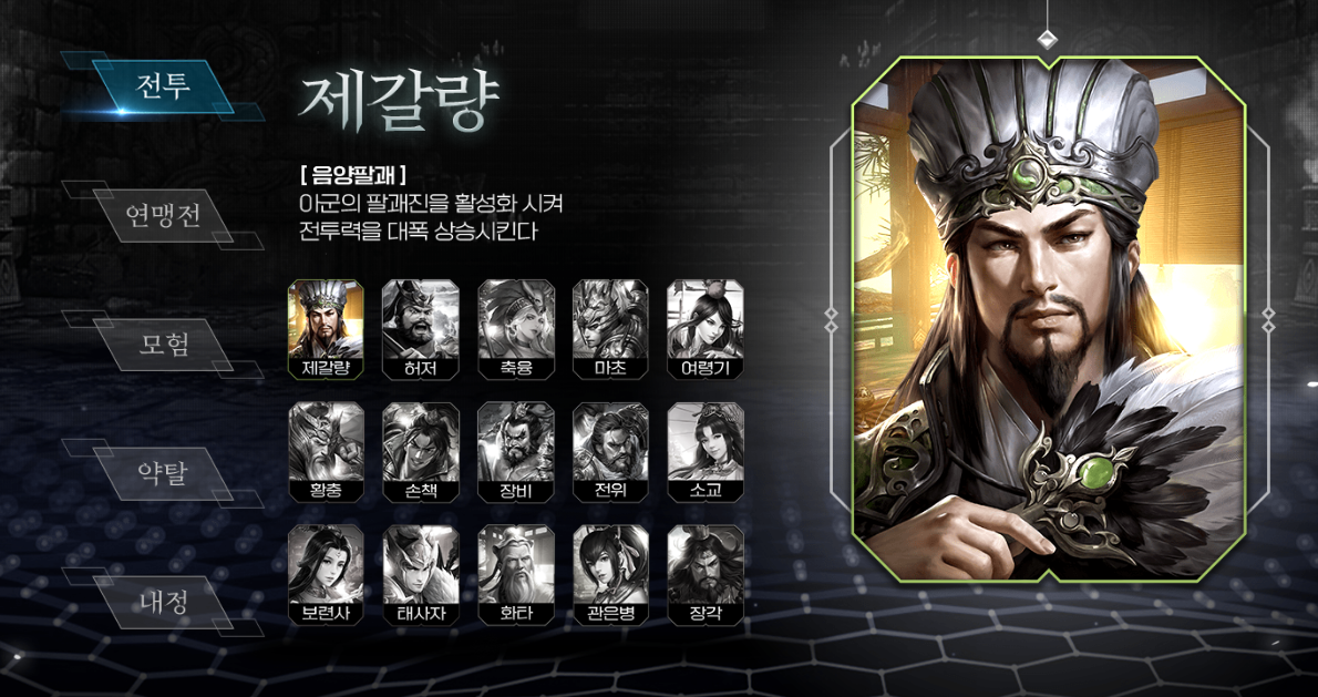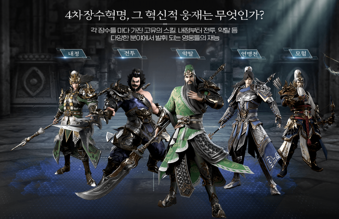 각 분야의 웅재와 관련된 장수들은 사전예약페이지를 통해 일부 공개되어 확인할 수 있습니다. 각각 웅재에 해당하는 장수들은 삼국지하면 빠지지 않는 장수들이 각 분야에 포진되어 있는 모습인데요, 어떤 장수들을 수집하고 활용할지 미리 고민해 봐도 좋을 것 같습니다.