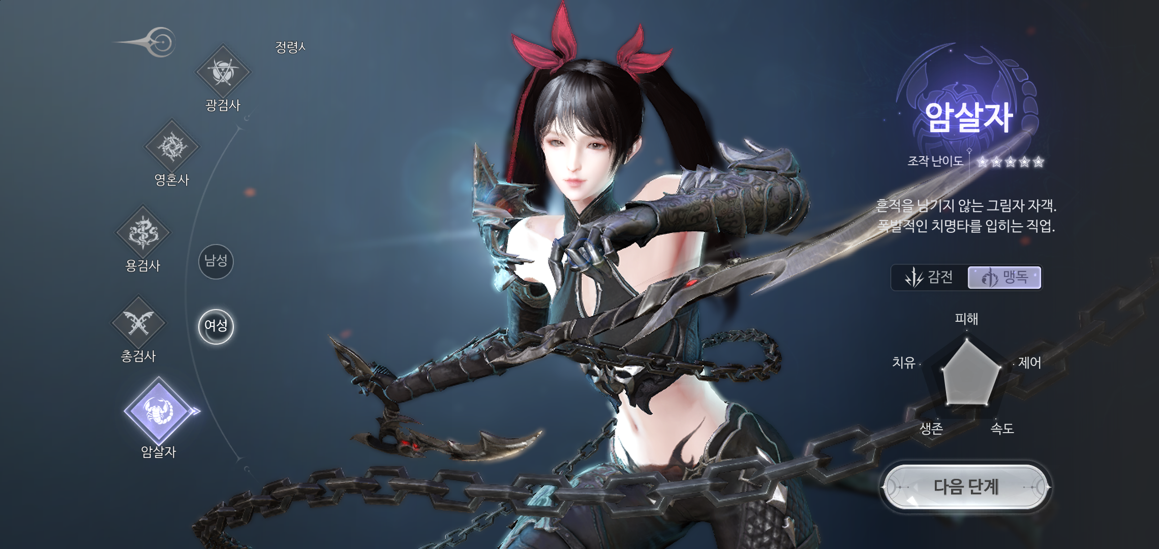 아르미스 신규 직업 암살자는 강력한 근거리 자격의 특징을 갖추고 있으면서 예측하기 어려운 암살 수법을 사용하는 점이 특징입니다. 실제 플레이를 해보면 은밀한 곳에 가려있다 등장하는 암살자의 느낌도 있지만 폭발적인 화력으로 시원한 전투를 즐길 수 있는 점이 돋보여 막힘없는 전투와 호쾌한 전투를 좋아하는 분들이라면 딱인 듯 합니다.