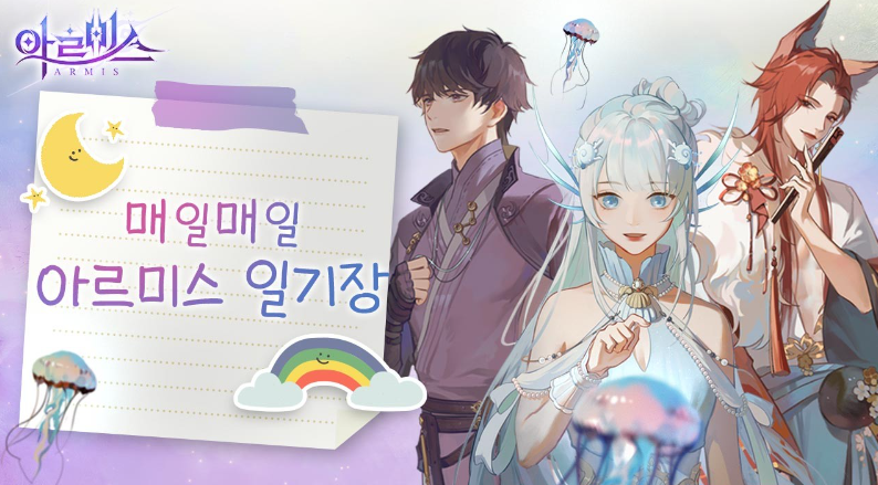 매일매일 아르미스 일기장도 8월 17일까지 진행됩니다. 매일매일 아르미스 일기장은 신규 모험가 또는 암살자 직업 모험가만 참여가능한 이벤트로 공식카페 [매일매일 아르미스 일기장]게시판에 사진과 함께 일기글을 작성하면 참여가 완료됩니다. 이때 이벤트 기간 내 3일 이상 글을 작성해야 하며 모든 글에는 1장 이상의 사진과 글이 포함되어야 합니다.