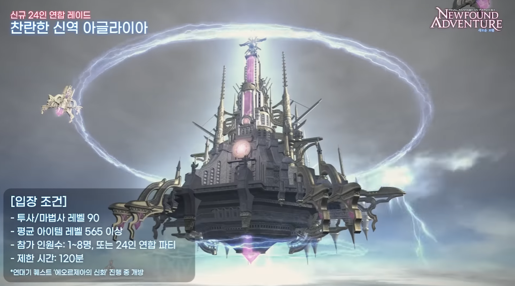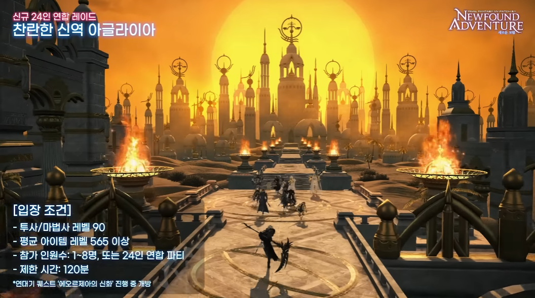 신규 24인 연합레이드 찬란한 신역 아글라리아도 이번 파이널판타지14 V6.1 업데이트를 통해 등장합니다. 투사/ 마법사 90 레벨, 평균 아이템 레벨 565 이상 입장 가능하며 1~8명 파티 또는 24인 연합파티 구성으로 도전 가능합니다. 120분의 제한시간을 가지고 있으며 연대기 퀘스트 에오르제아의 신화 진행 중 개방됩니다. 무엇보다 에오르제아 세계관에 존재했던 열 두신이 레이드 몬스터로 등장한다고 하니 기대해볼 만합니다.