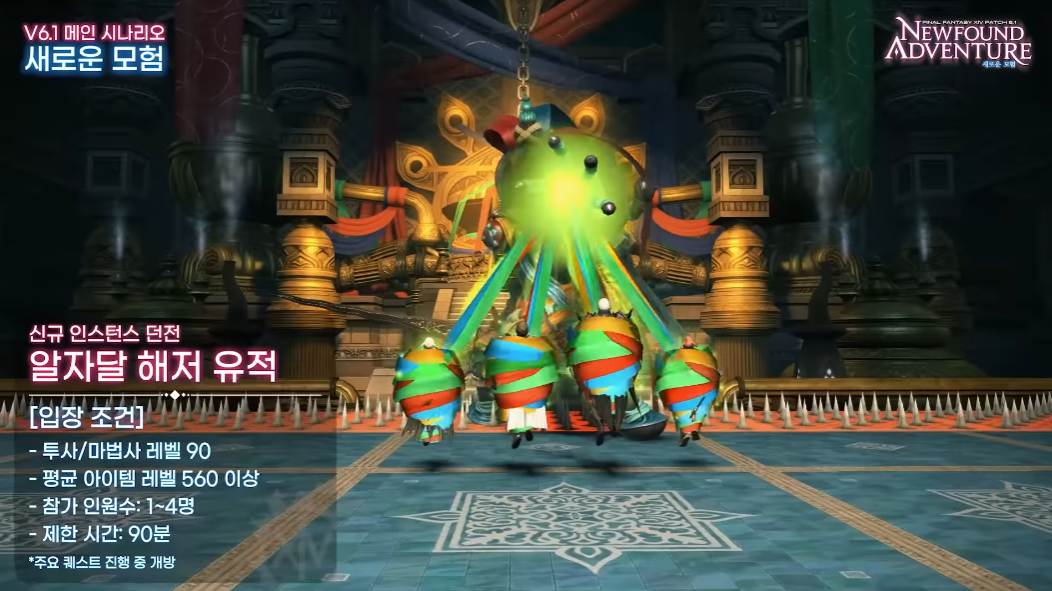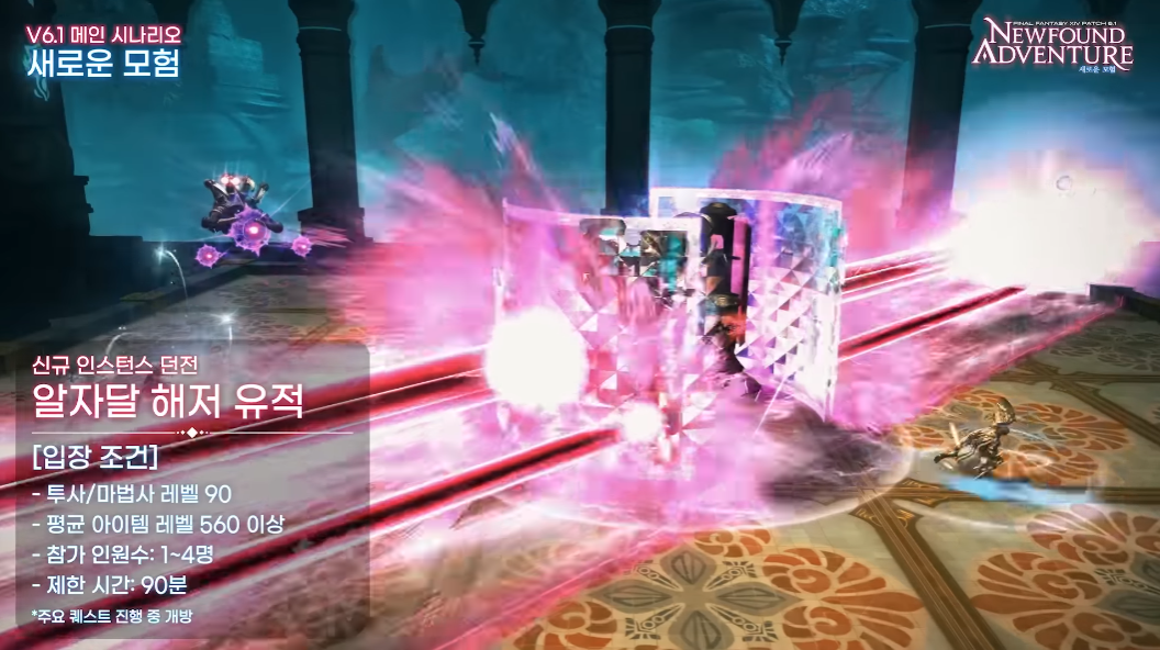 신규 인스턴스 던전 알자달 해저 유적도 추가될 예정입니다. 사베네어 섬에 위치한 던전으로 주요 퀘스트 진행중 개방됩니다. 투사와 마법사 90 레벨, 아이템 560 레벨 플레이어라면 입장할 수 있습니다. 참가 인원수의 경우 1인부터 최대 4명까지 파티를 이뤄 가능하며, 90분의 제한시간을 가지고 있습니다.