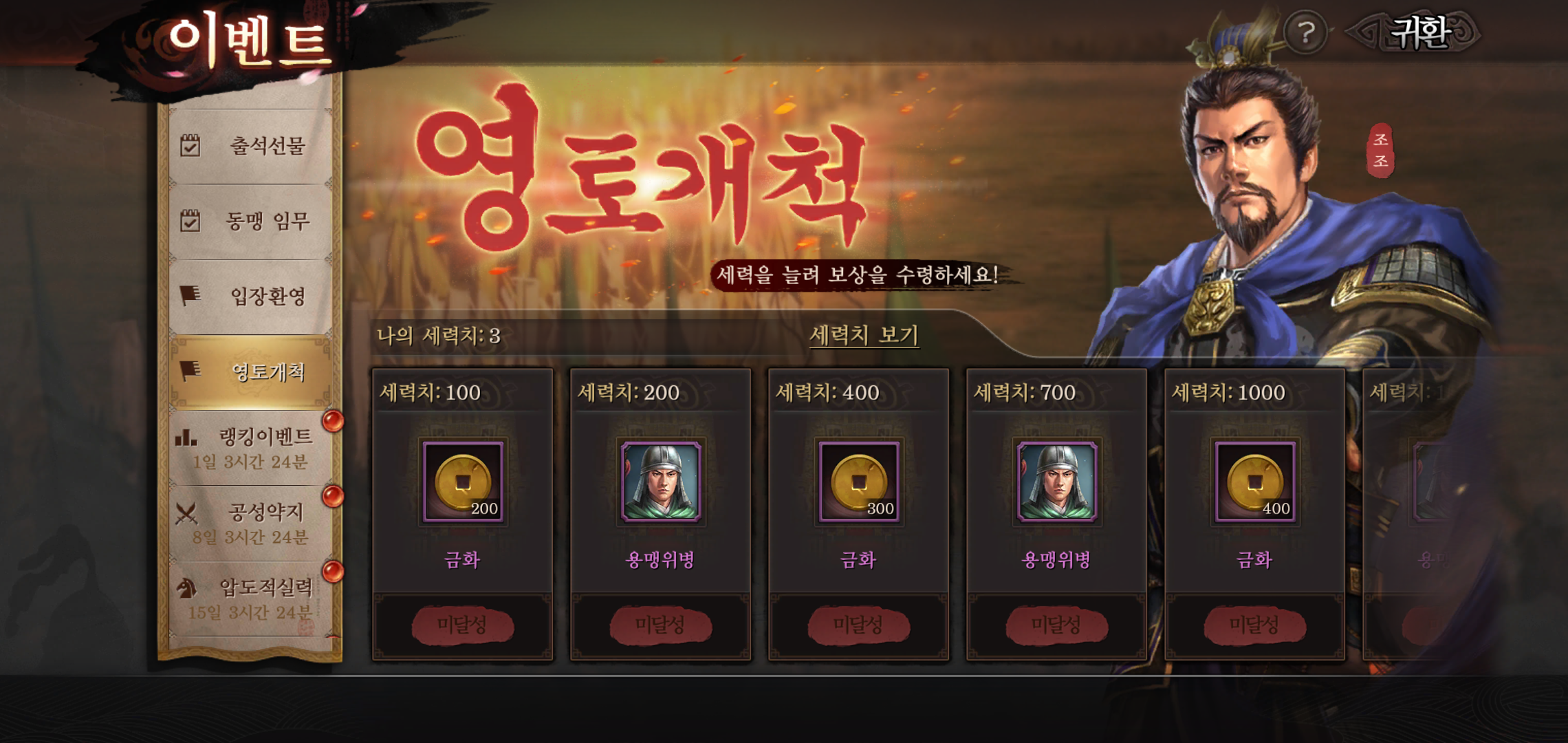 BJ윤서야 방송을 통한 이벤트 외에도 삼국지 전략판을 즐기는데 필요한 인게임 재화를 풍성하게 얻을 수 있는 추석 선물 이벤트부터 영토 개척, 군웅 쟁탈 등의 이벤트가 진행되고 있습니다. 이제 막 시작하거나, 복귀 유저라면 충분한 재화를 수령할 수 있는 만큼 지금 삼전에 접속해 전략과 전술이 주는 재미를 제대로 즐겨보시기 바랍니다.