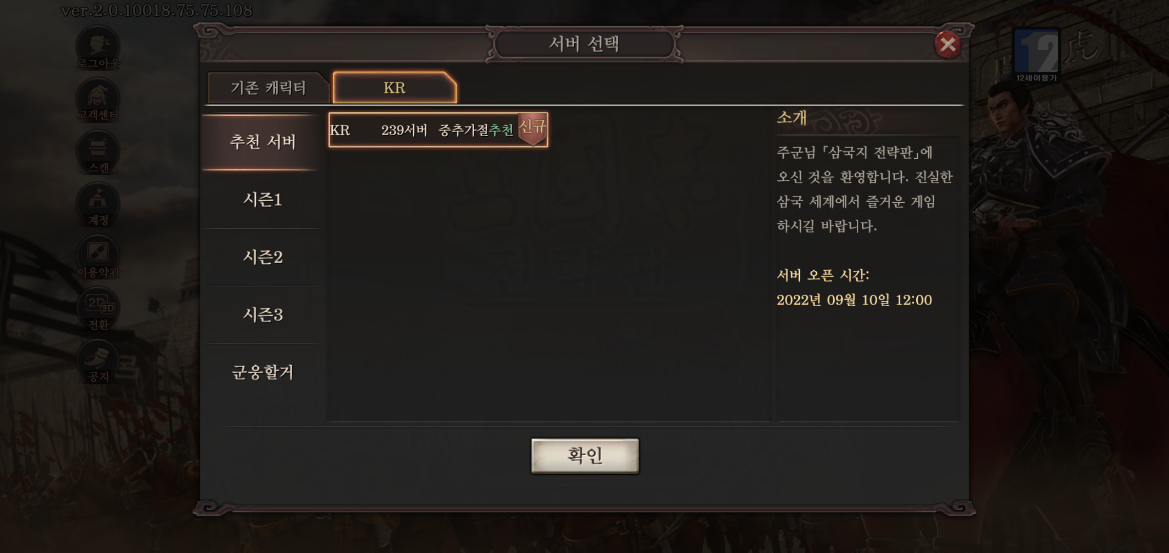 이제 막 삼국지전략판을 시작하거나, 복귀를 고민하는 분들이라면 추석을 맞이해 중추가절 신서버가 오픈된 지금이 적기인 듯합니다. 중추가절 서버는 기존 유저들은 새로운 시나리오를 즐길 수 있고, 신규 유저는 초보자를 위해 더 나은 환경을 제공하기 위해 새롭게 제작된 시즌1을 즐길 수 있기 때문입니다.
