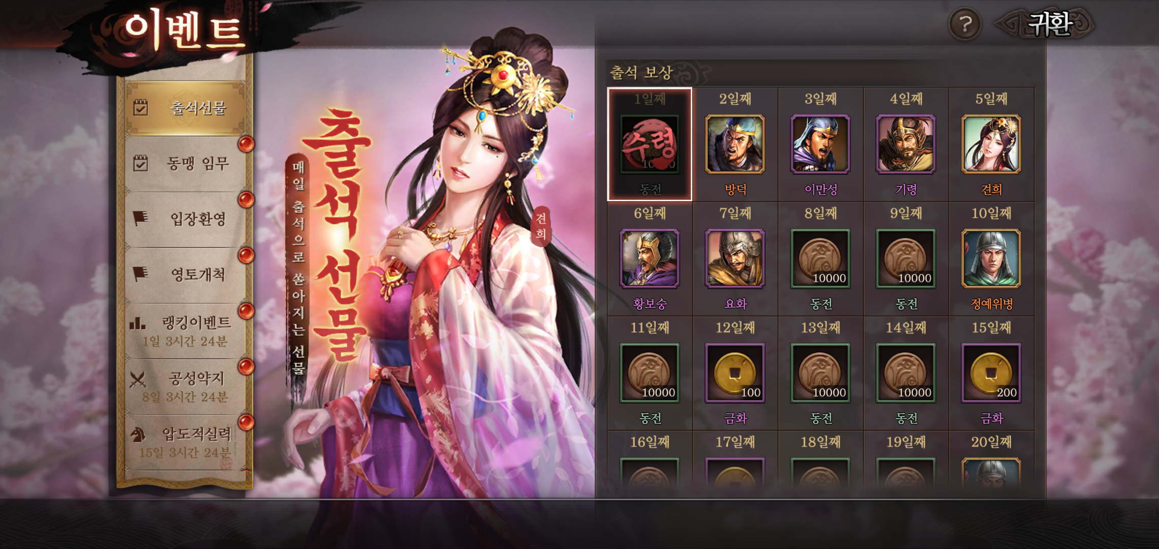 BJ윤서야 방송을 통한 이벤트 외에도 삼국지 전략판을 즐기는데 필요한 인게임 재화를 풍성하게 얻을 수 있는 추석 선물 이벤트부터 영토 개척, 군웅 쟁탈 등의 이벤트가 진행되고 있습니다. 이제 막 시작하거나, 복귀 유저라면 충분한 재화를 수령할 수 있는 만큼 지금 삼전에 접속해 전략과 전술이 주는 재미를 제대로 즐겨보시기 바랍니다.