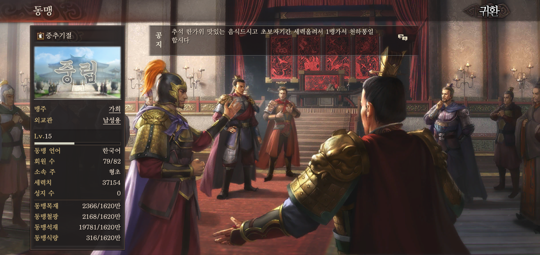이제 막 삼국지전략판을 시작하거나, 복귀를 고민하는 분들이라면 추석을 맞이해 중추가절 신서버가 오픈된 지금이 적기인 듯합니다. 중추가절 서버는 기존 유저들은 새로운 시나리오를 즐길 수 있고, 신규 유저는 초보자를 위해 더 나은 환경을 제공하기 위해 새롭게 제작된 시즌1을 즐길 수 있기 때문입니다.