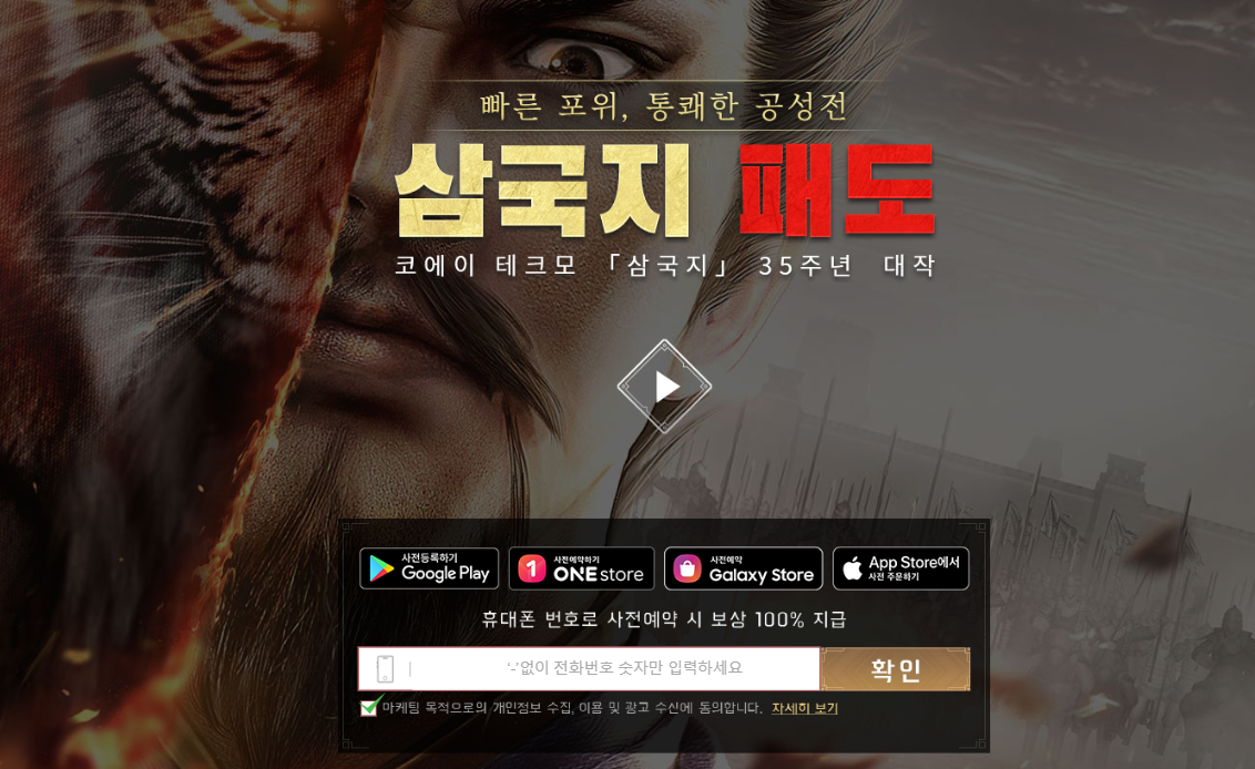 홈페이지 : https://koei-samgukji-hadou.qookkagames.co.kr/#/index