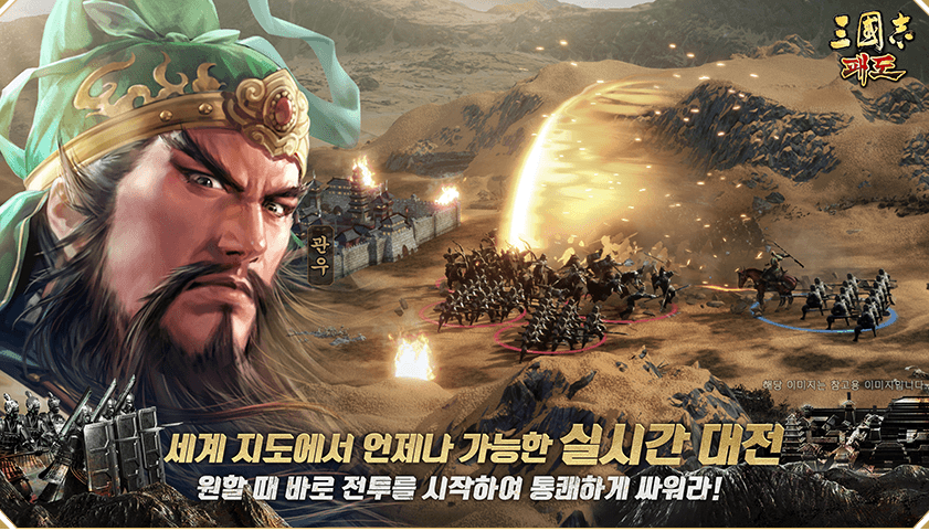 삼국지 패도는 SLG장르이지만 실시간 대전을 즐길 수 있는 점이 특징인데요, 세계 지도를 바탕으로 라이브 전투가 진행되며 이를 실시간으로 관리하고 전술을 펼쳐 승리를 이끌어 낼 수 있도록 구성되어 있어 긴장감 넘치는 플레이를 즐길 수 있는 점이 특징입니다.